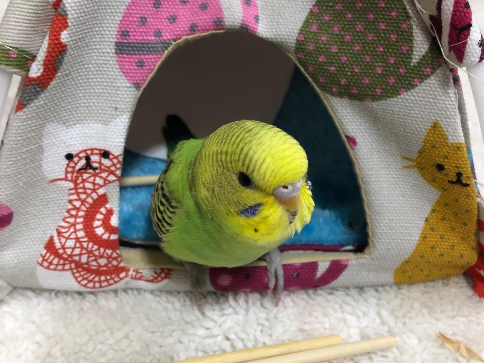 とても元気で、他のインコを止まり木から落とそうとしたり、勢いあまって指を噛んでいる時に皮まで剥がしたりしちゃうインコです。飛ぶのが早く、知らない人に手を伸ばされると、気づいたらどっかに行っていたということもあるかもしれません。鼻が最近ちょっと茶色くなってきています。