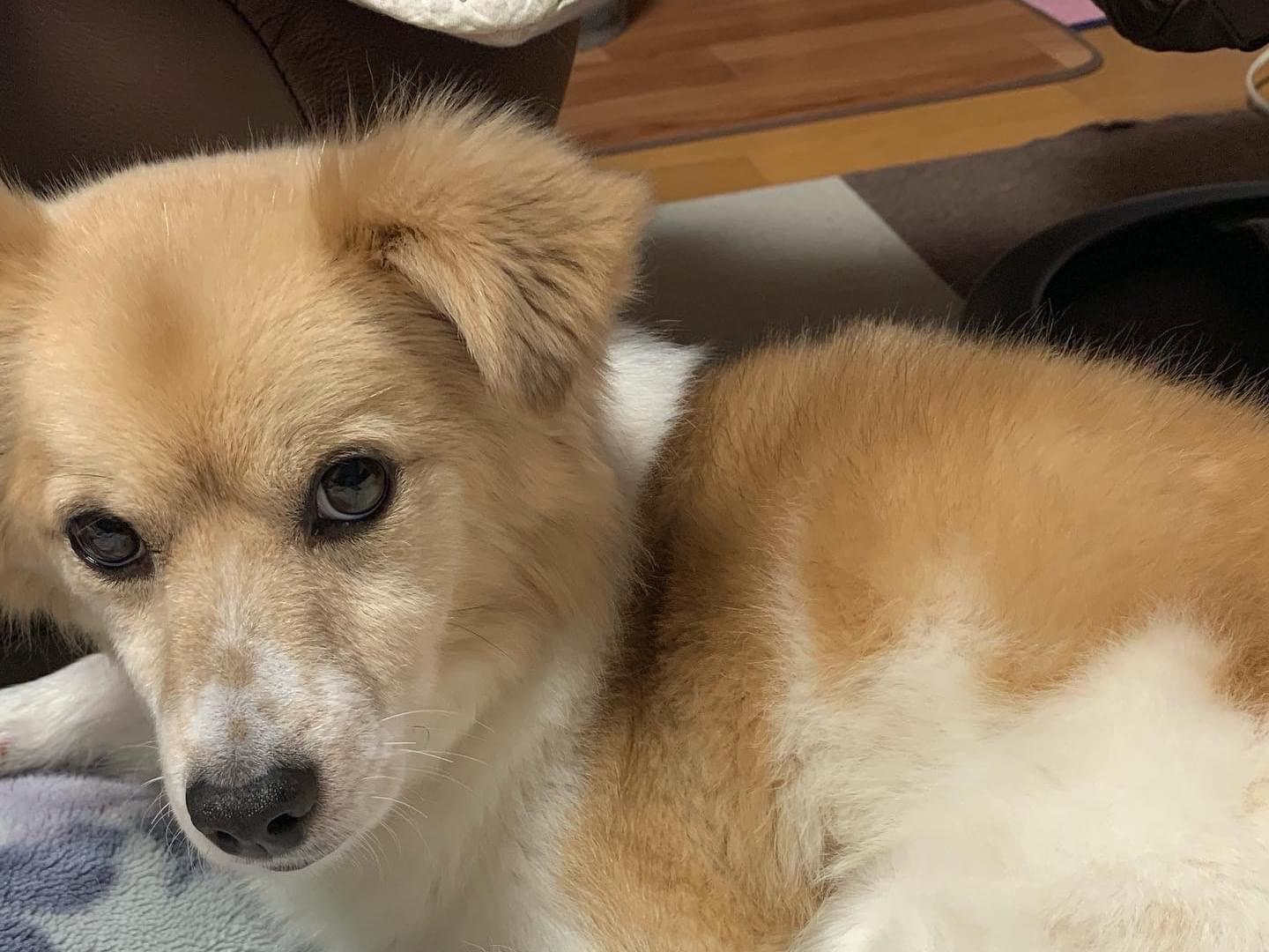 白と茶色の小型犬を探しています