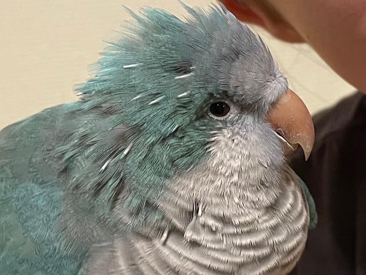 すぐに人の頭や肩に乗ります。この種の特徴のようですが、時折大きな声で鳴きます。身体はふくよかでやや丸みがあります。現在、近くの親に預かってもらっています。もともと、インコを飼い続けている人なので、安心だと思います。間に合わせのカゴが小さく可愛そうなので、わざわざ大きめの鳥かごを買ったようです。げんきで待っていますので、どうか飼い主さんが見つけてくれますように。