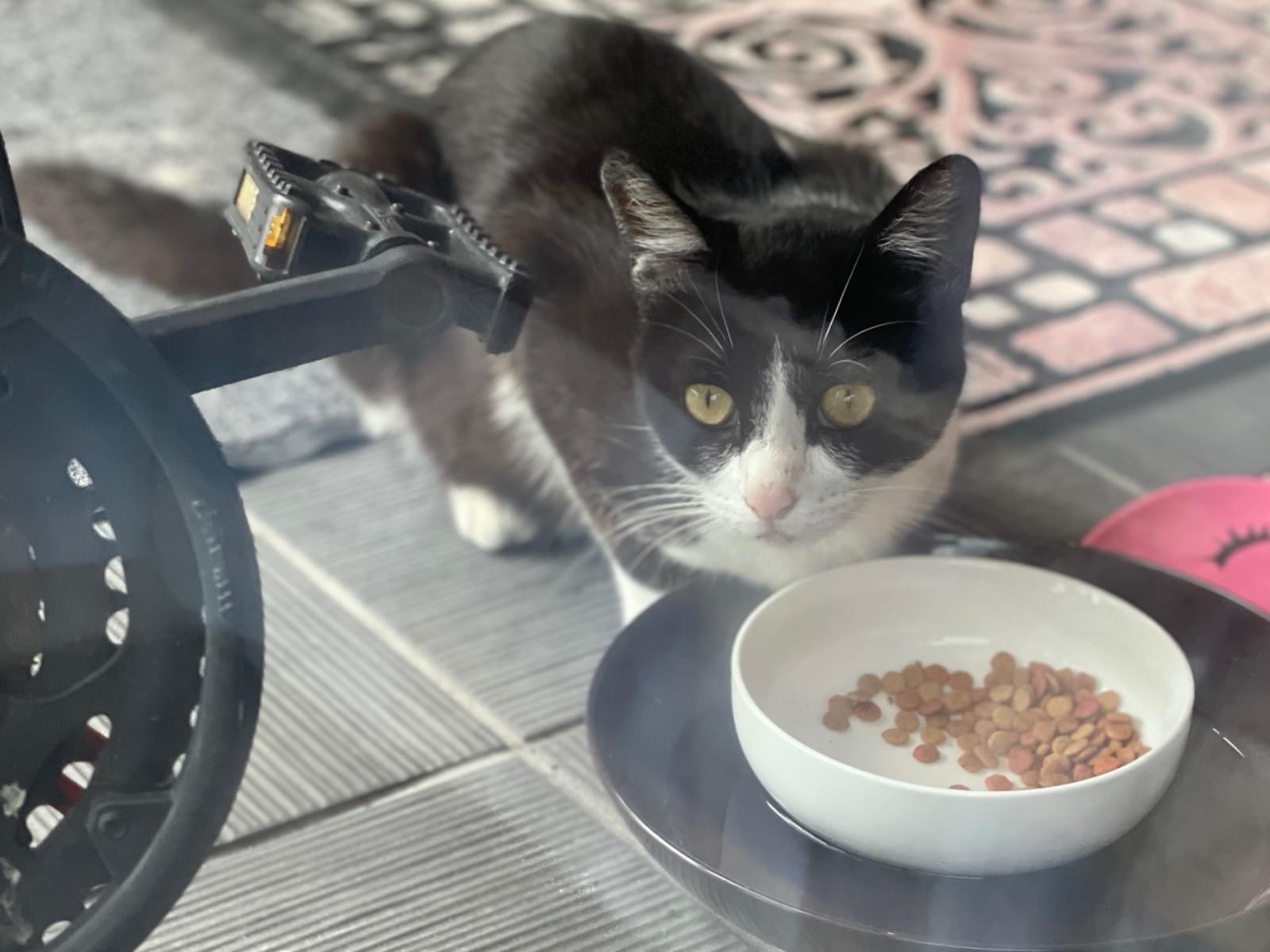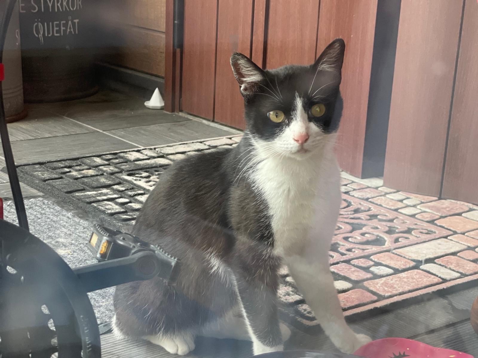 庭に黒白の猫が迷いこんできました