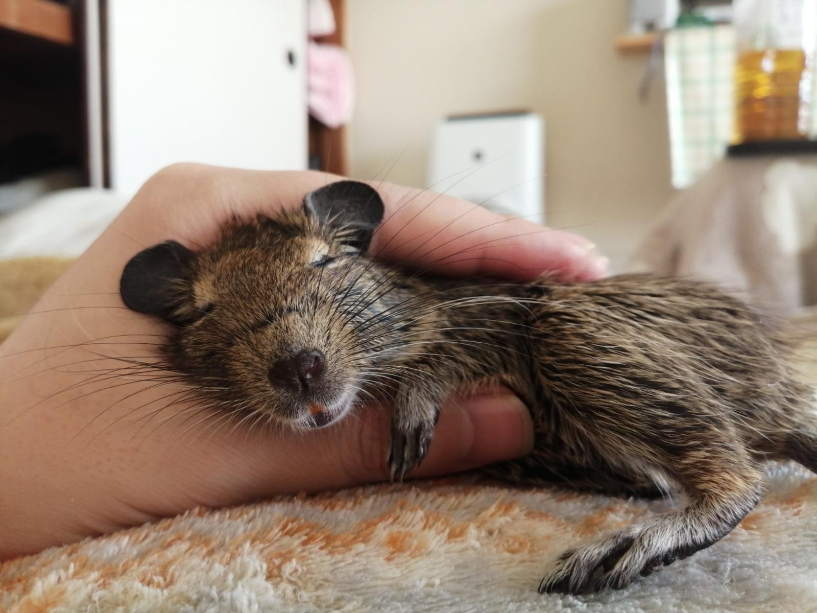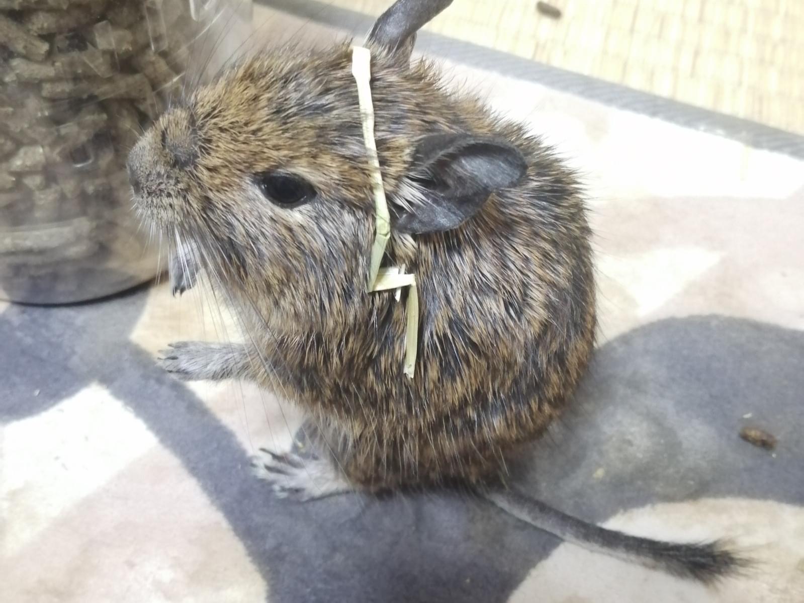 お尻の辺りの毛が少しハゲています、また尾切れがあるため尻尾が少し短くなっています