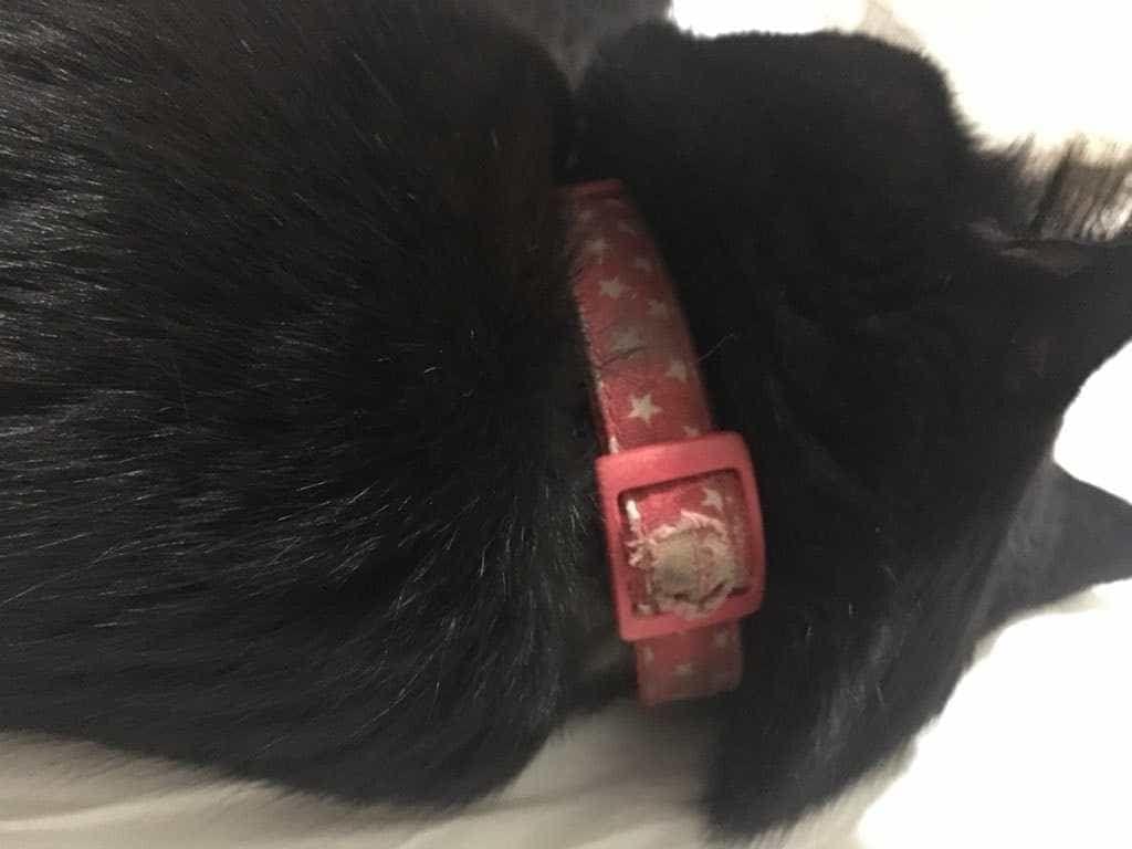 ・赤い首輪を着けていた(小さな星がたくさんある柄)