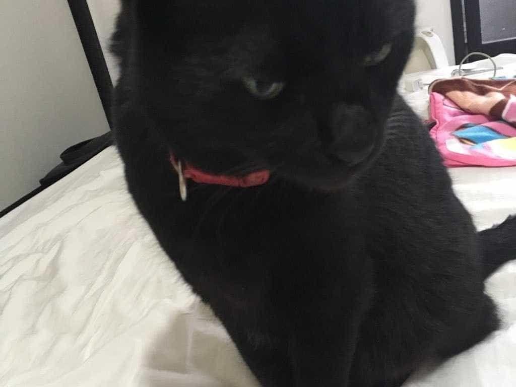 赤い首輪(星マークあり)を着けた黒猫を保護してます