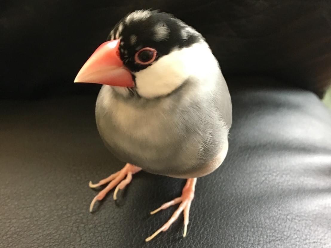 体全体がグレーで頭と尻尾が黒色です。また首の周りが白色でクチバシと目の周りが赤色です。