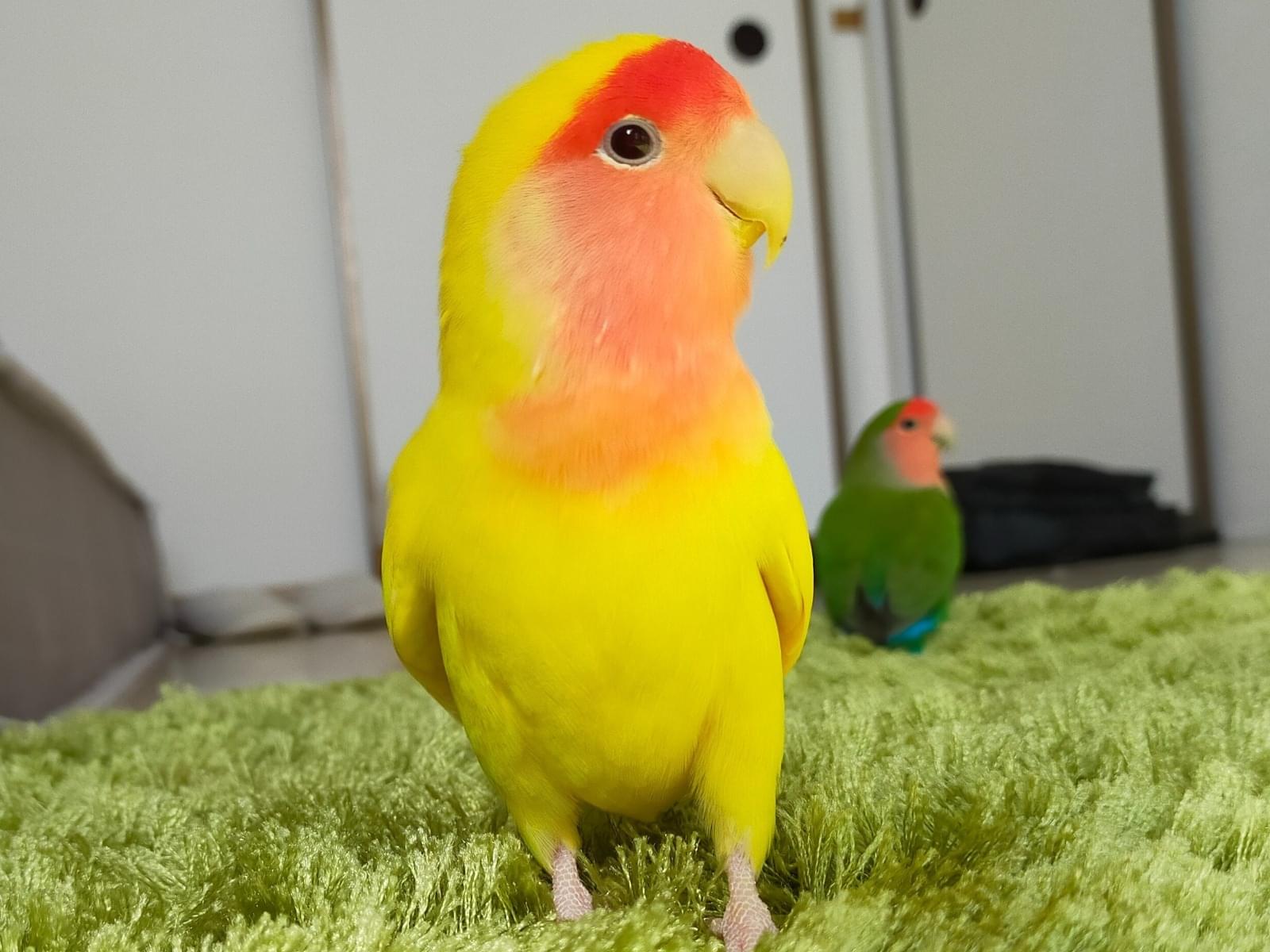 ・もう一羽のコザクラインコと部屋の中でよく一緒に行動していました。