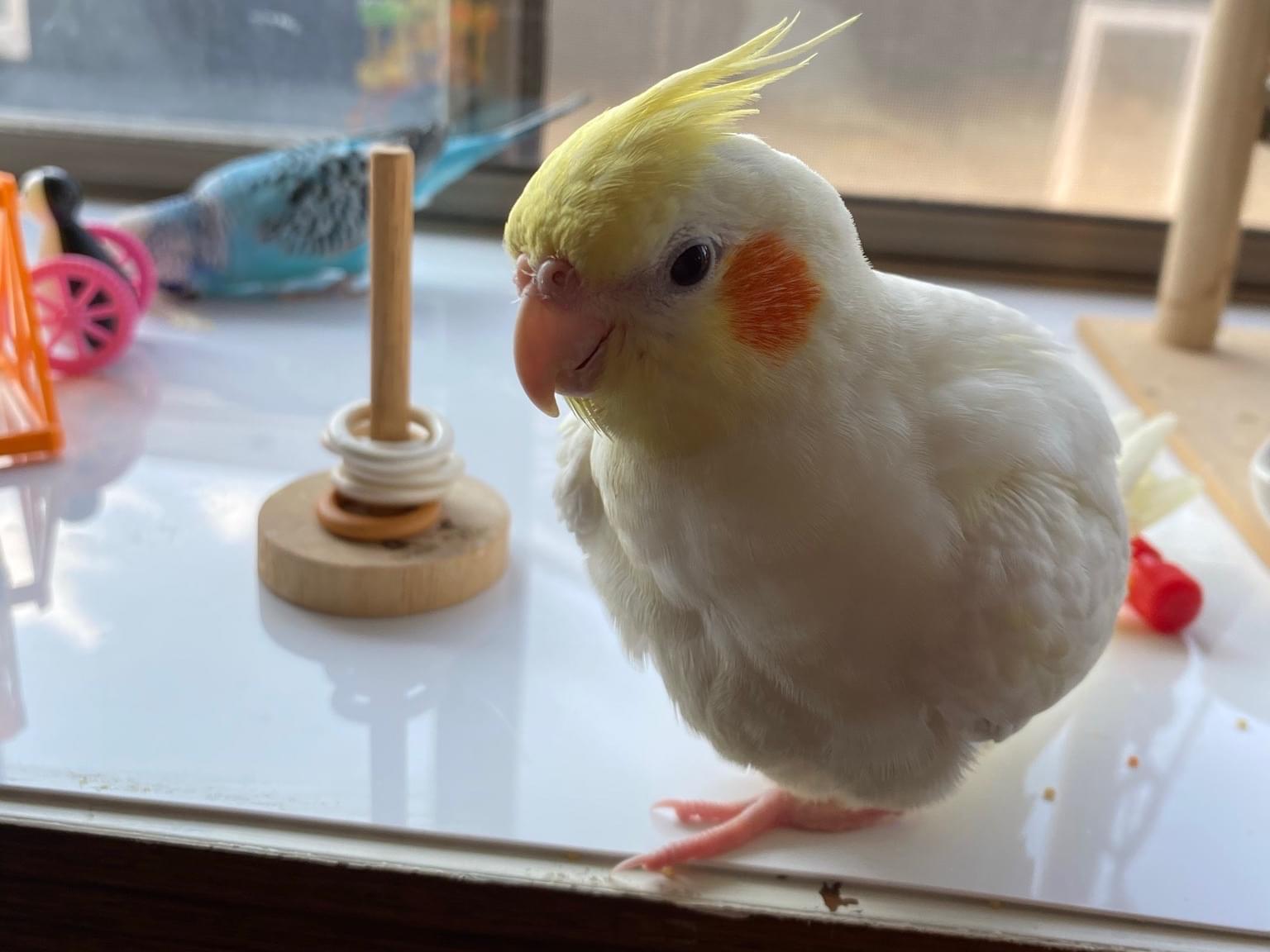 オカメインコ、ルチノーです。26日風の強かった日のお昼頃に、飛んで行ってしまいました。飛ぶのはあまり上手ではないです。 ミッキーマウスマーチを歌いますが、ご機嫌な時でないと歌わないかと・・。目撃情報ありましたら、宜しくお願いします。