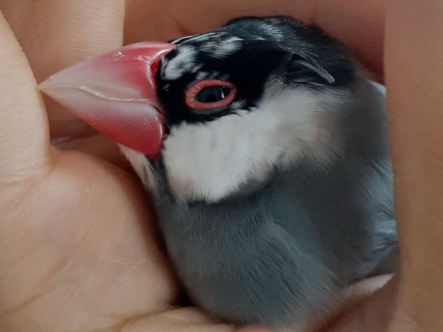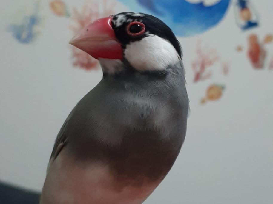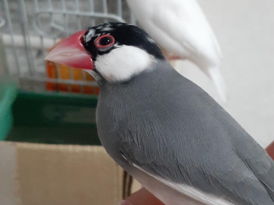 桜文鳥を探しています。頭は黒と白のまだら模様です