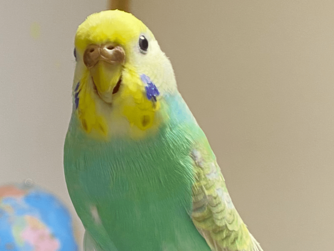 青いほっぺのセキセイインコ