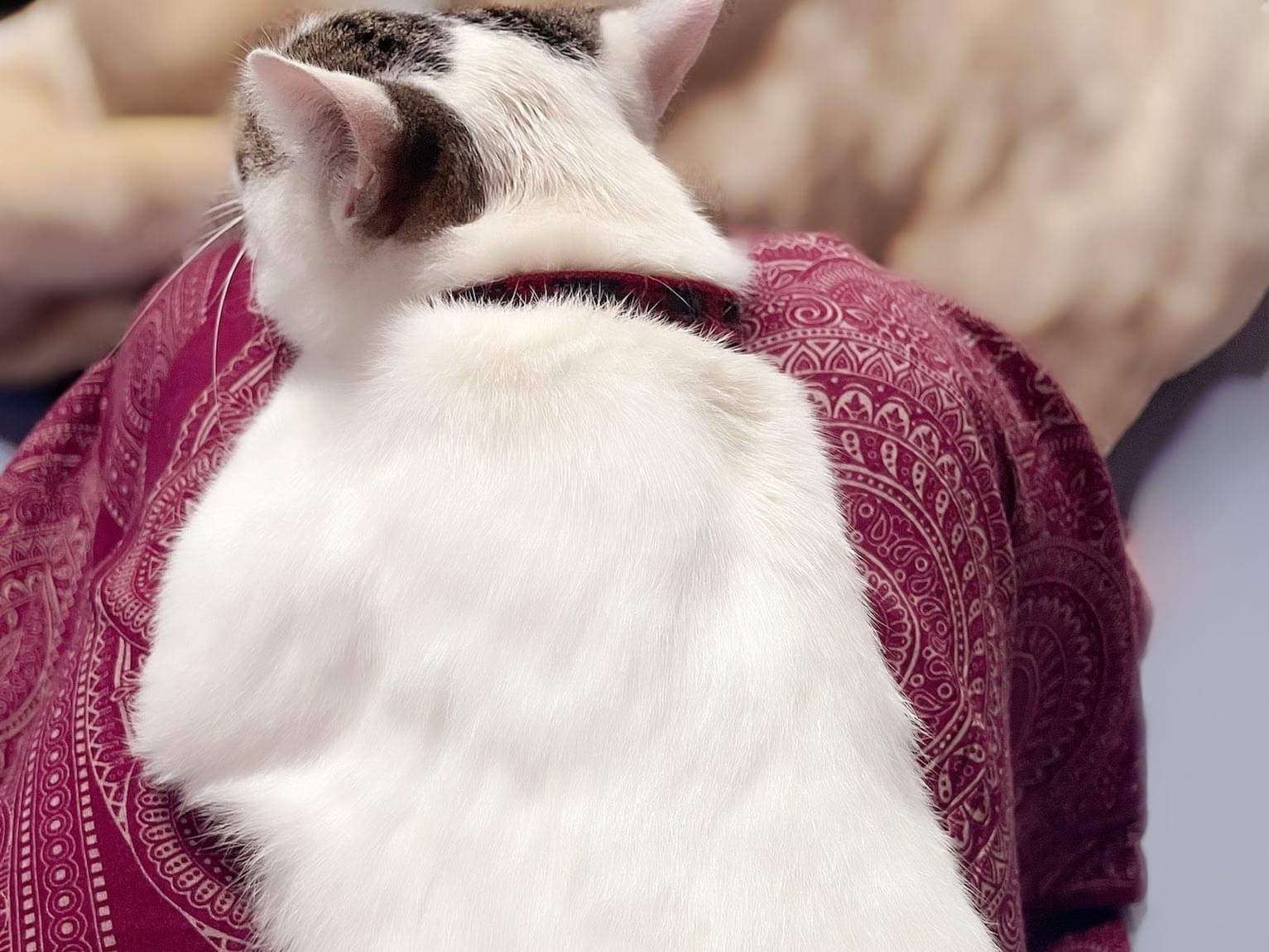 ・赤のタータンチェック柄の首輪 鈴の留め金はハート型