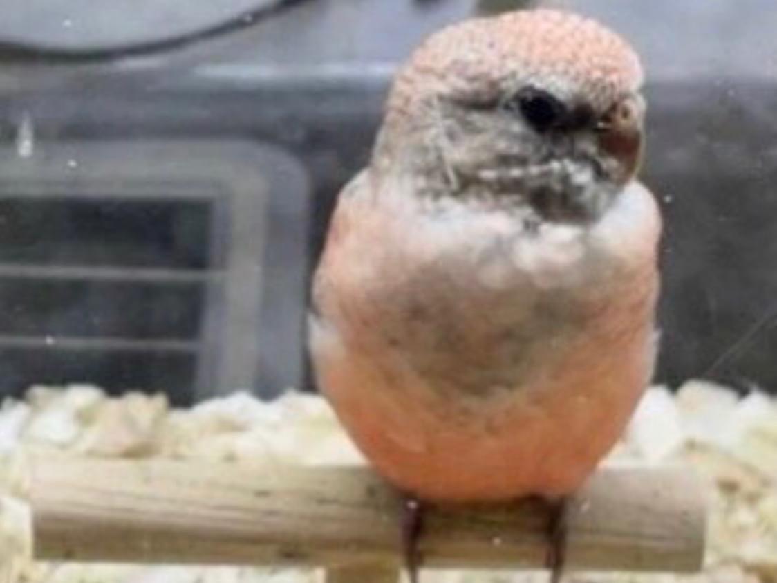 羽の外側のみ焦げ茶色で全体的にピンクの可愛いインコです