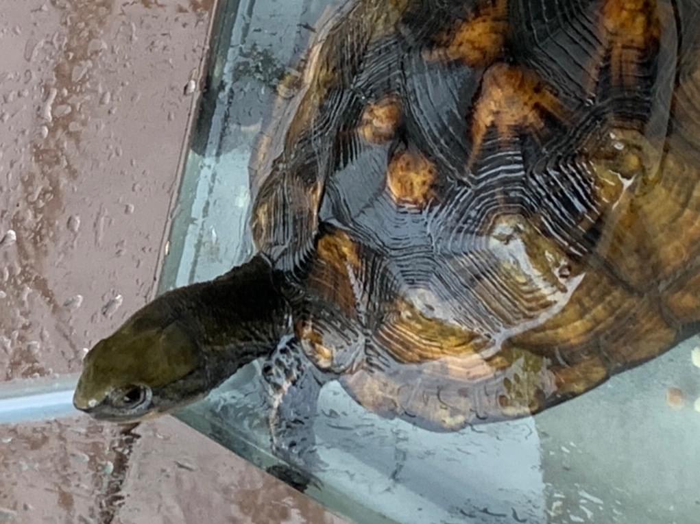 11時半ごろ道の真ん中を歩いているイシガメらしき個体を保護しました。保護してカメの餌をあたえたところ、もりもり食べていたので、飼育されてる亀だと思います。心当たりがありましたら連絡下さい。