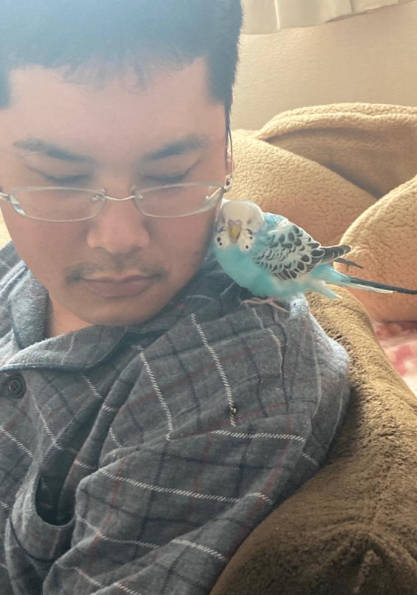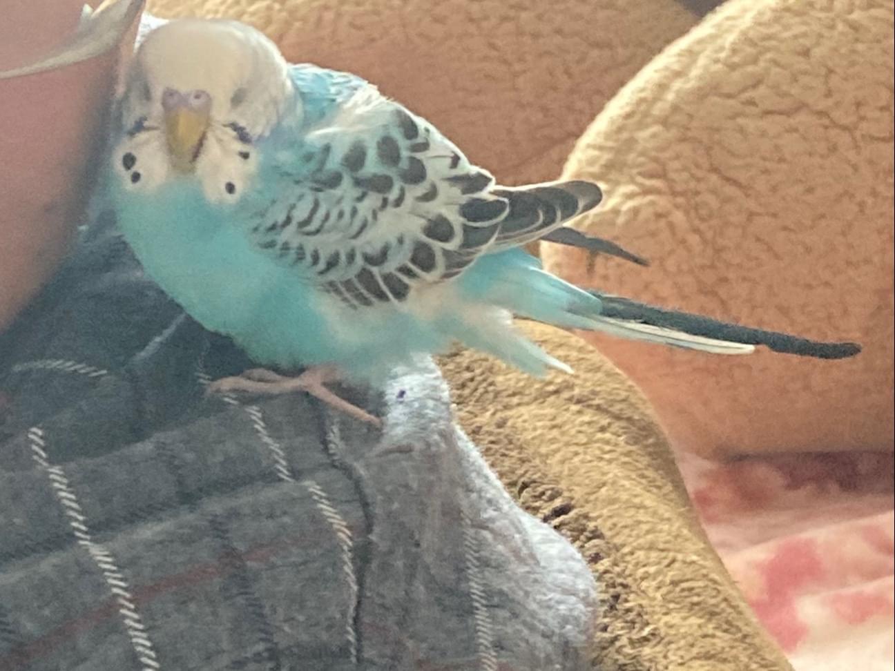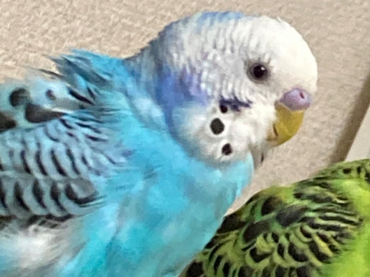頭がちょっと白く水色で黒い模様のセキセイインコを探してます。