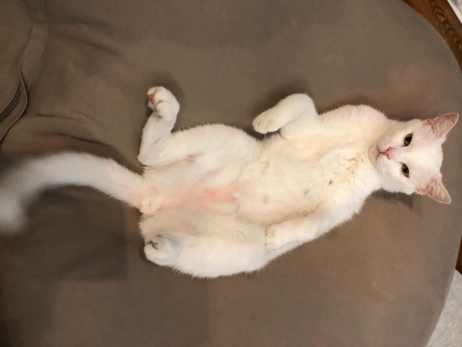首輪はしていません。真っ白で、やや大型やせぎみです。夜のうちにいなくなったのか朝いませんでした。