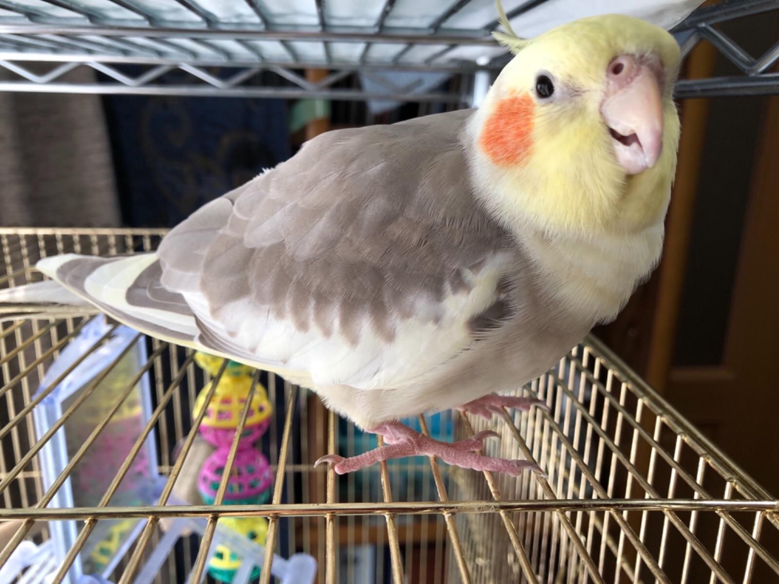 色はオレンジほっぺ、グレーの体に薄黄色の頭です