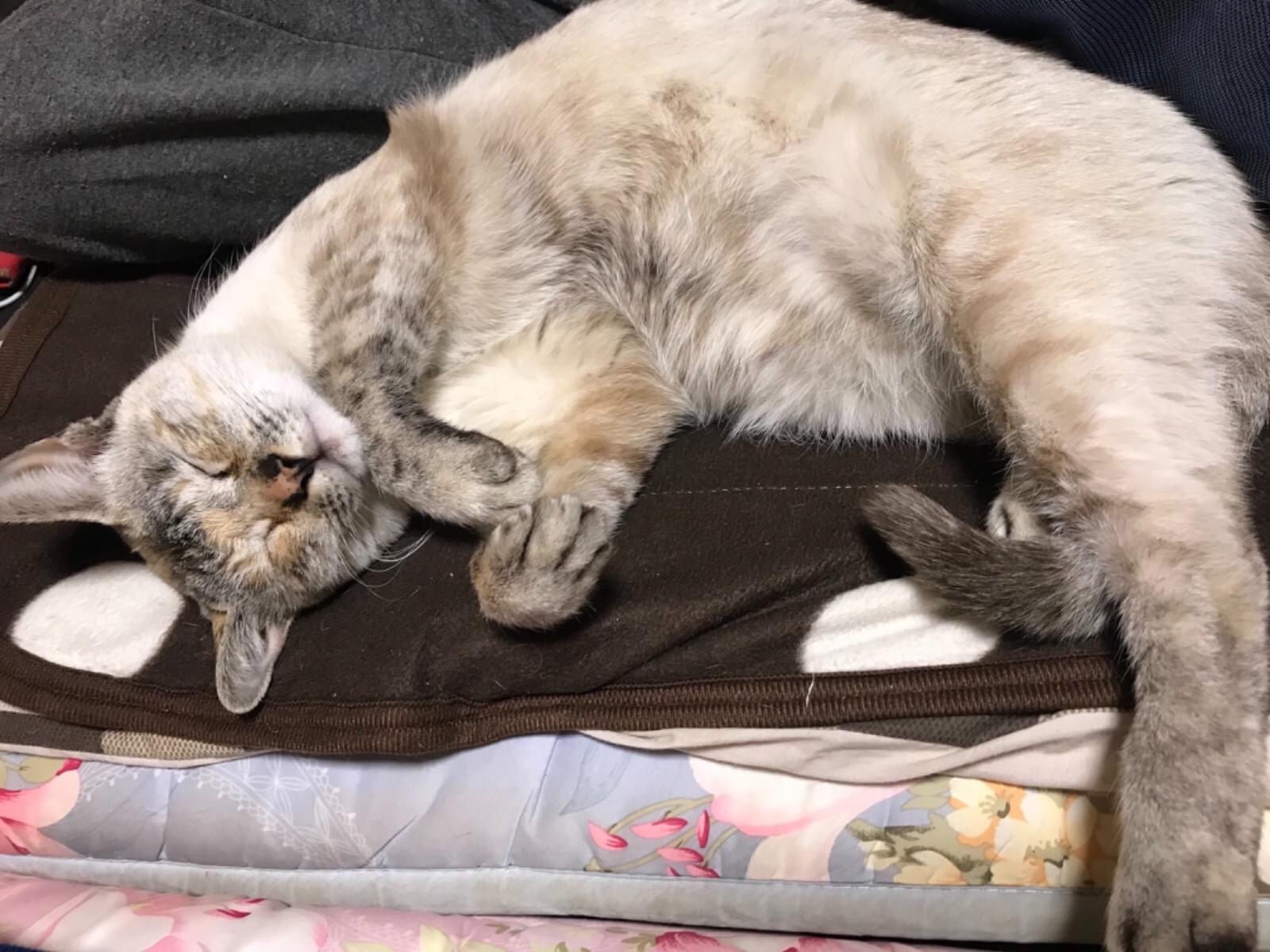 尻尾、手足、顔は黒と茶色が混ざっています。