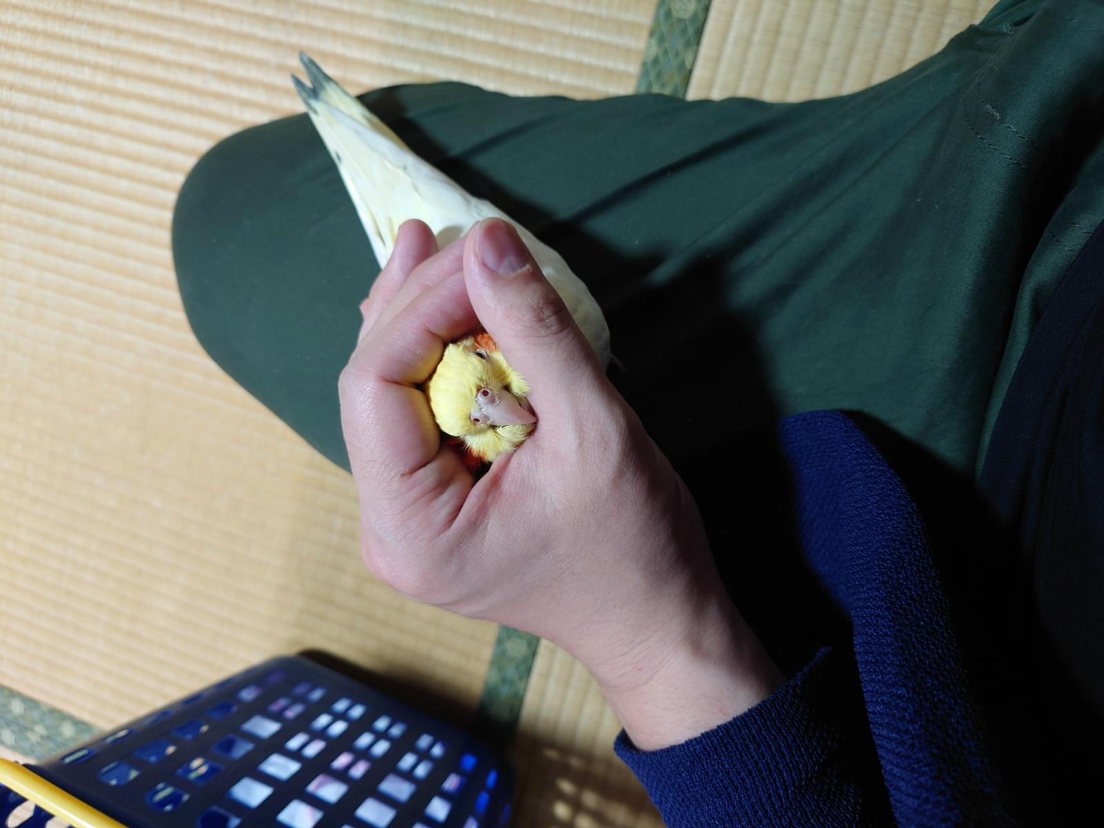家庭の事情により、風切羽は不完全にカットしてあります。