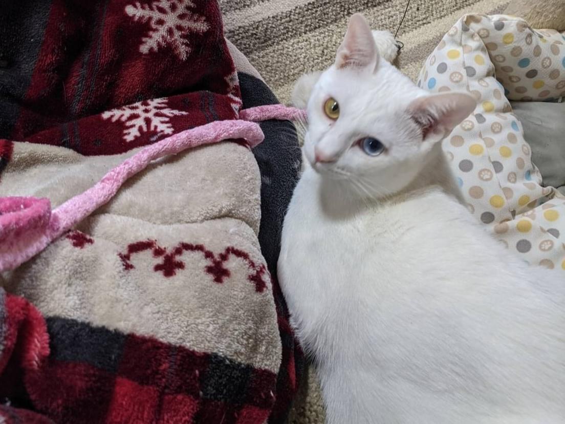 ちょうど1年前に自宅裏で保護し、ずっと室内で飼っていました。