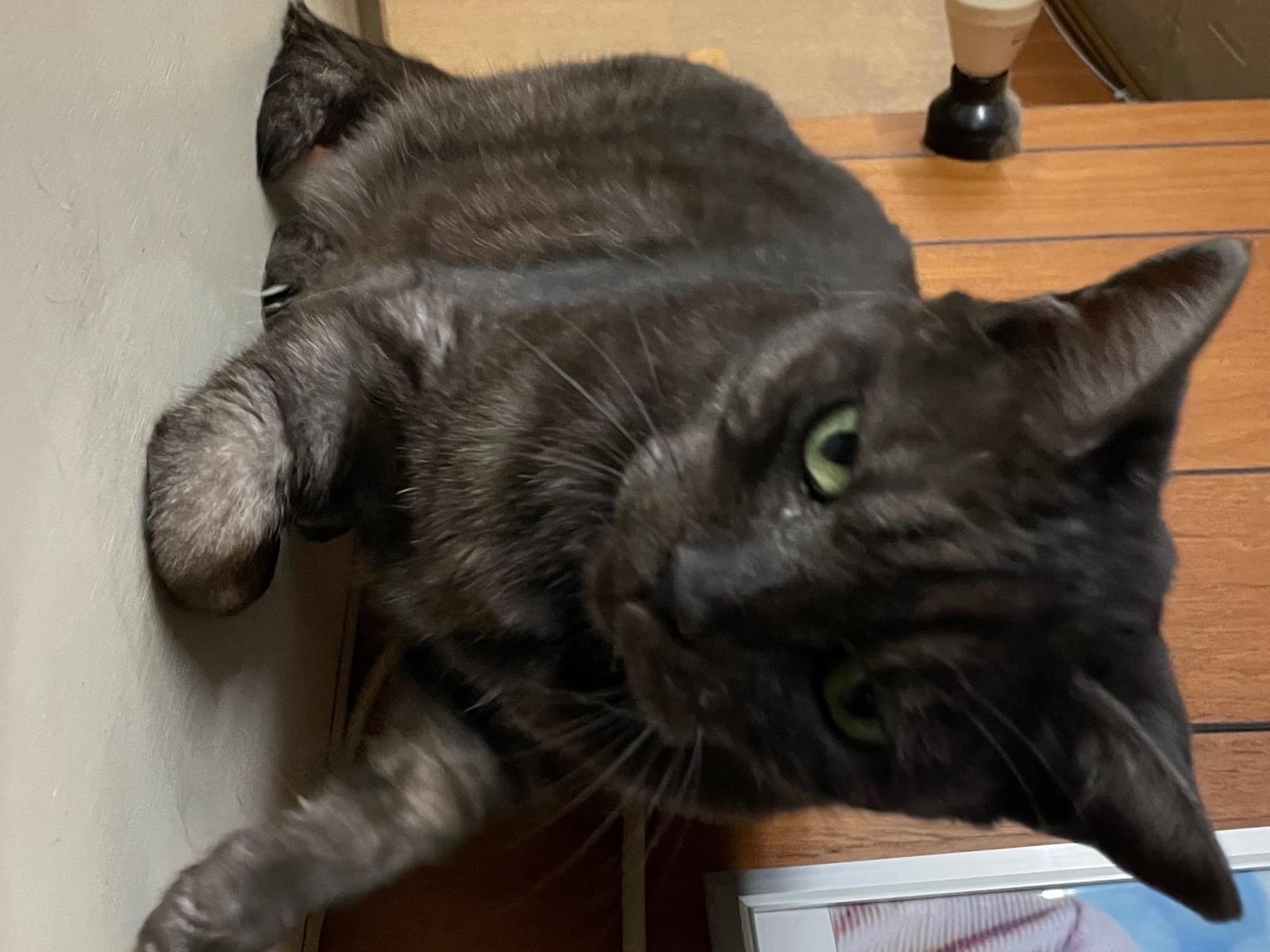 毛色は真っ黒ではなく、少し縞模様がありますが、