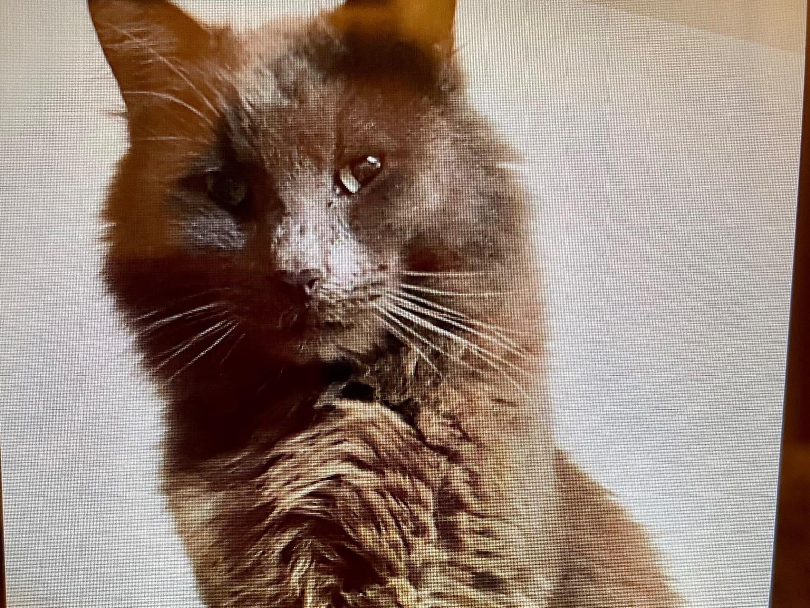 鳴き声は高めで「んにゃー」と言う感じの鳴き方をします。見かけた方、お手数ですが連絡をお願いします。