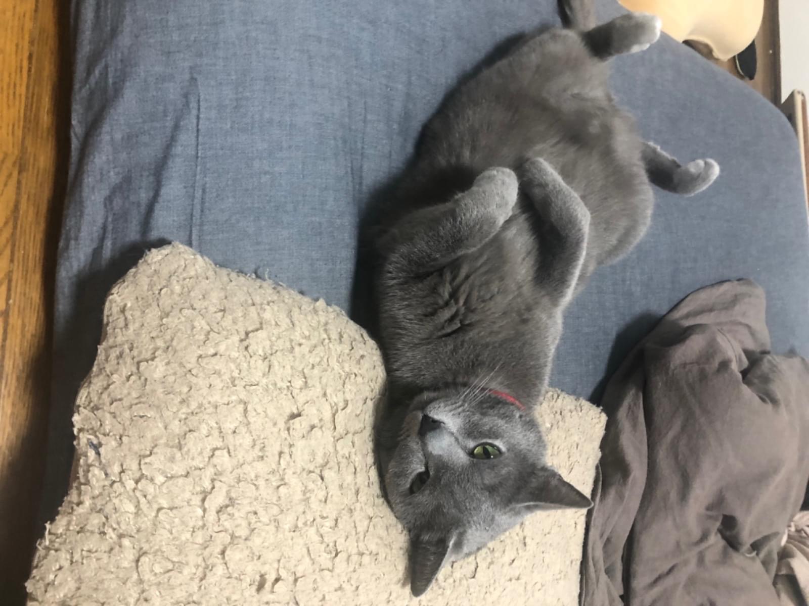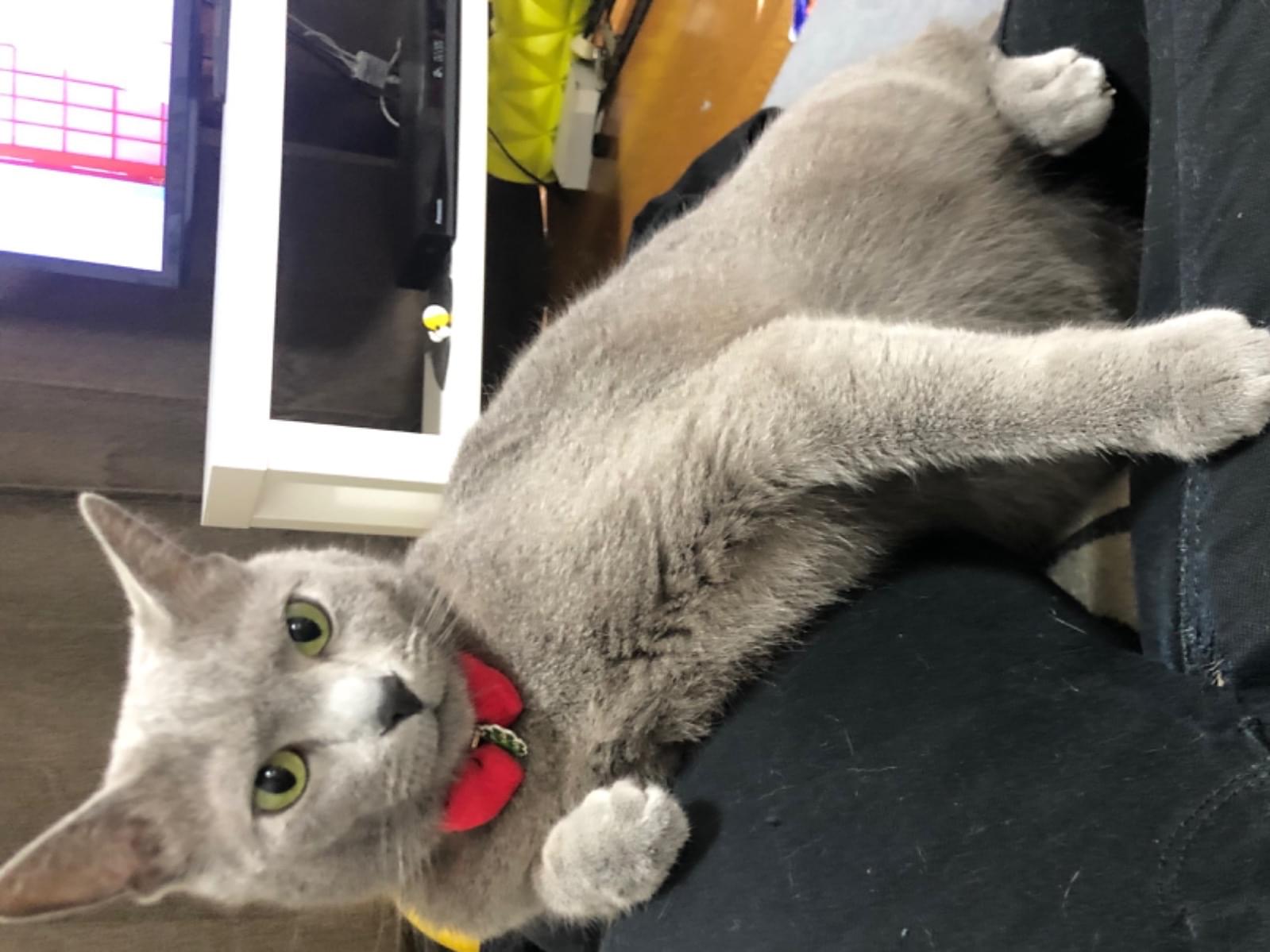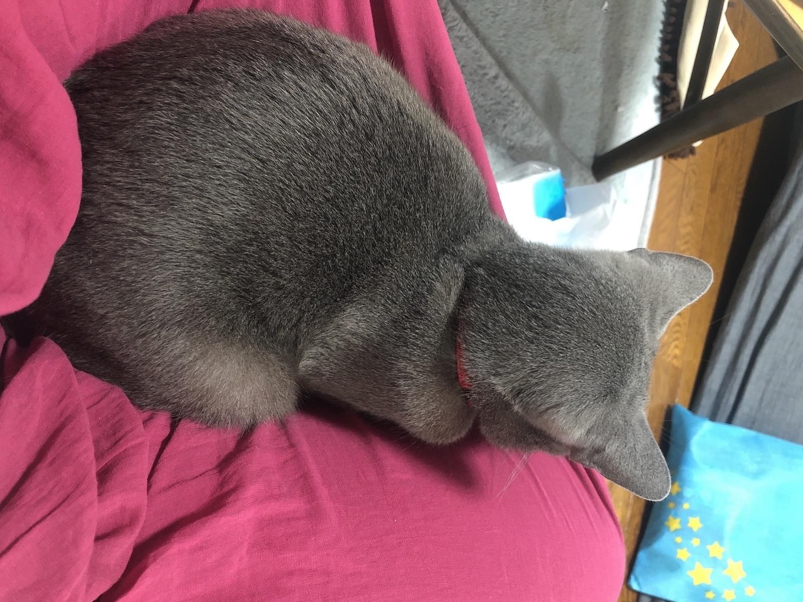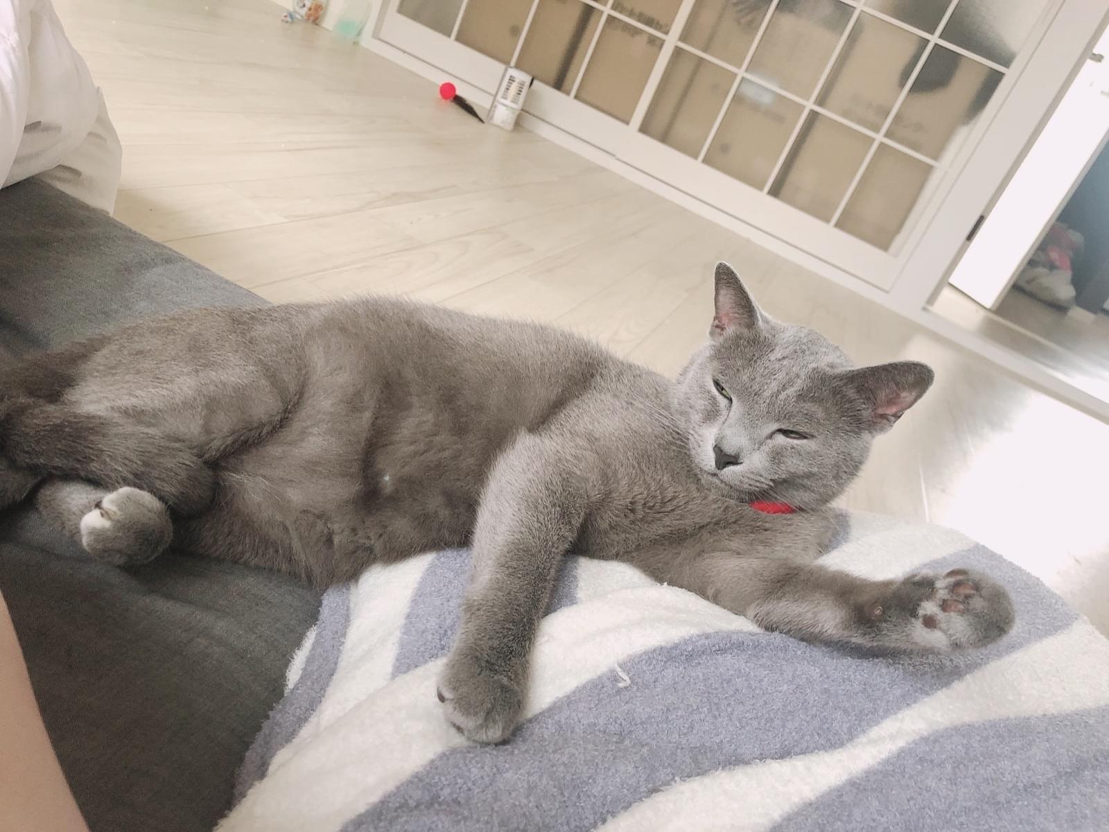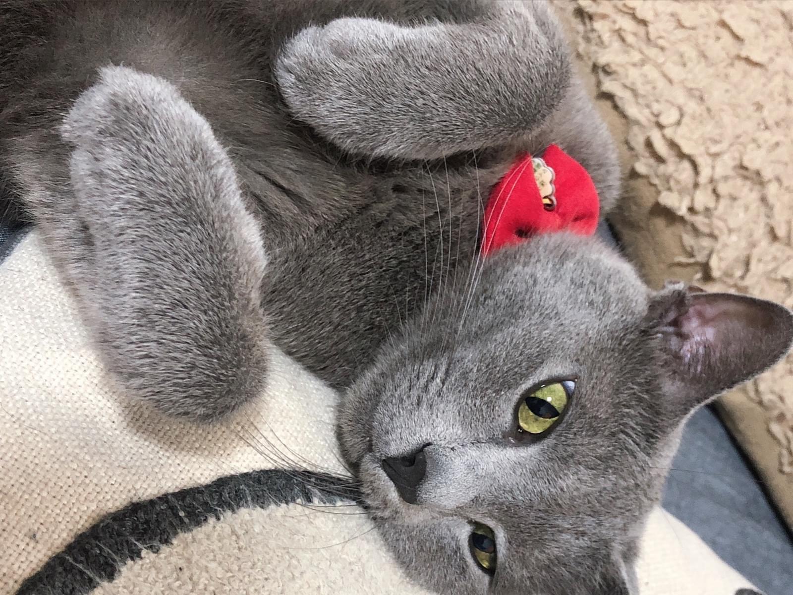 鼻先が少し白めですがロシアンブルーにしては小柄サイズです