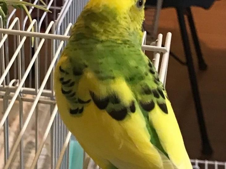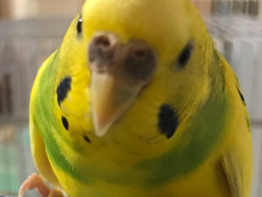 緑と黄色の羽に黒い斑点もようの若いセキセイインコを探しています