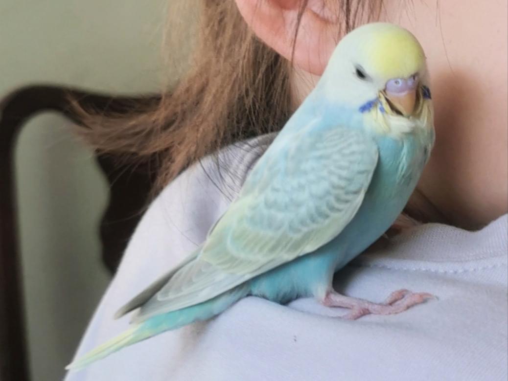 人懐こく、肩や腕に乗ります。肩に乗り人の唇にちゅっちゅっするのが大好きです。つかまえようとすると逃げるかもしれませんので、手や腕に乗せて室内に連れて行ってから保護していただけると捕まえやすいです。犬も大好きで背中に乗ろうと飛んでいきます。野菜の葉っぱが大好きで、あると手に乗りやすいです。