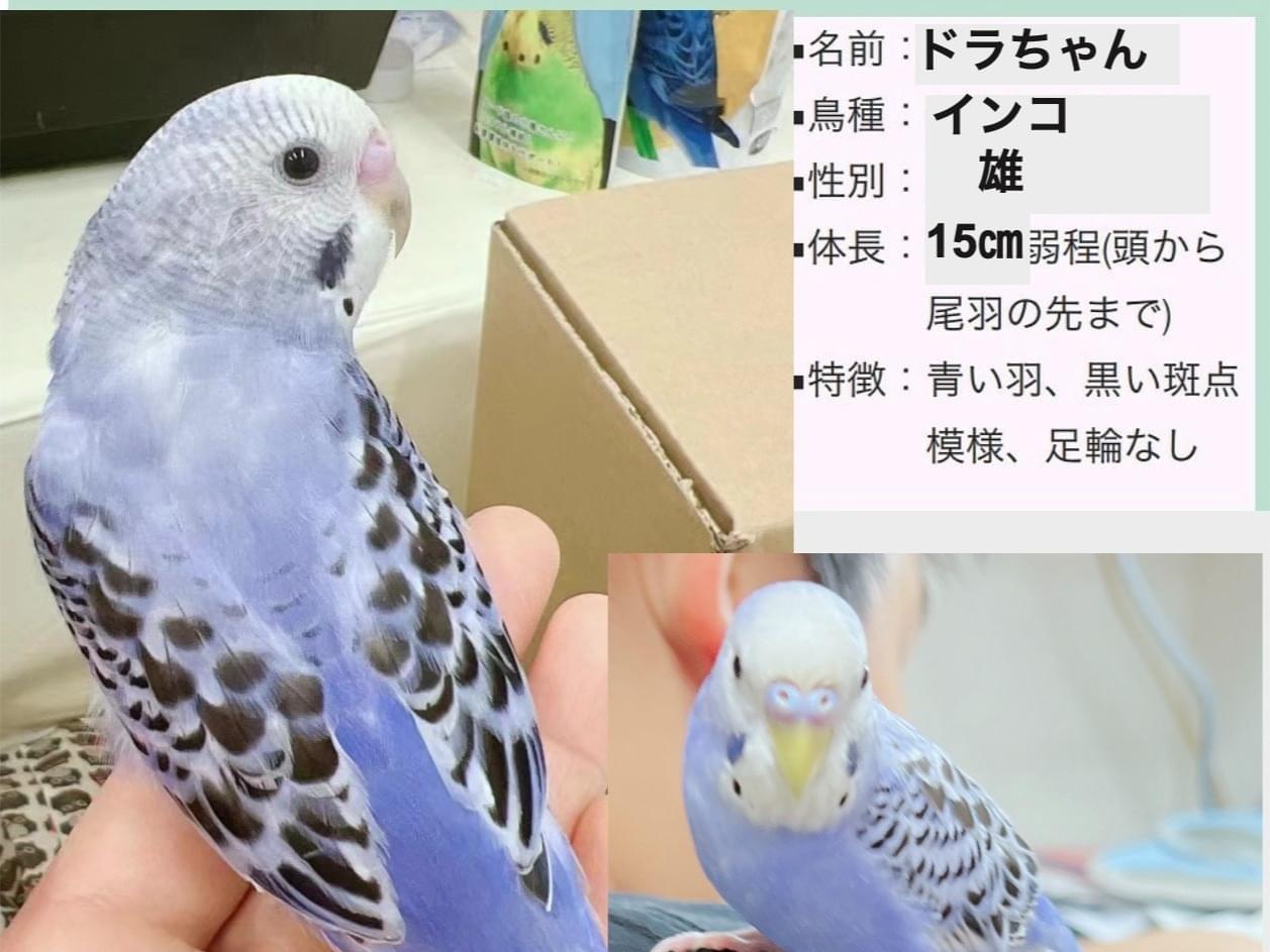 特徴:青い羽、黒い斑点、足輪なし、口笛を吹いてキスをすることができる