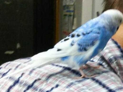 手のりではないですが、よく人の頭や肩に乗ってきます。以前ケガをして左足が青くなっているのが特徴です。