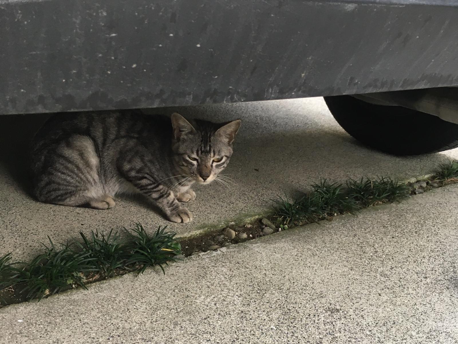 マンション建設現場でお弁当の残りを食べて命を繋いでいるようです。白キジのまだとても若く華奢な猫。尻尾はすんなりと長く、警戒心が強い猫です。首輪などはつけていません。無事に家に帰れるといいのですが。