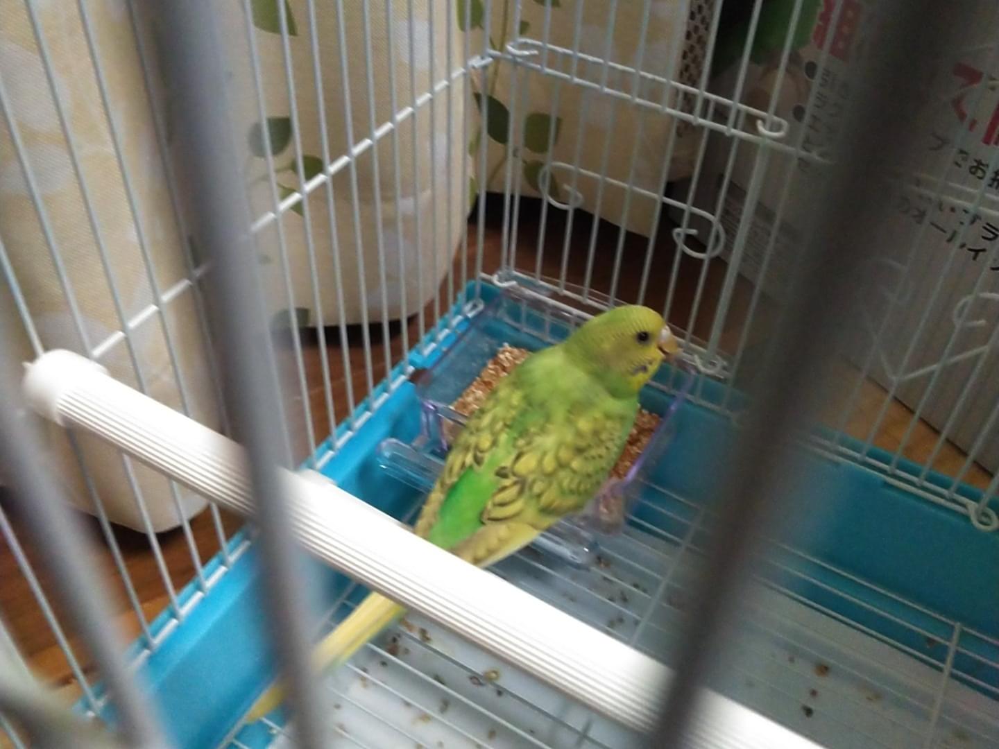 インコのいる環境は40年ぶりですが、ケージに入れ、お水と餌を食べてもらっています。