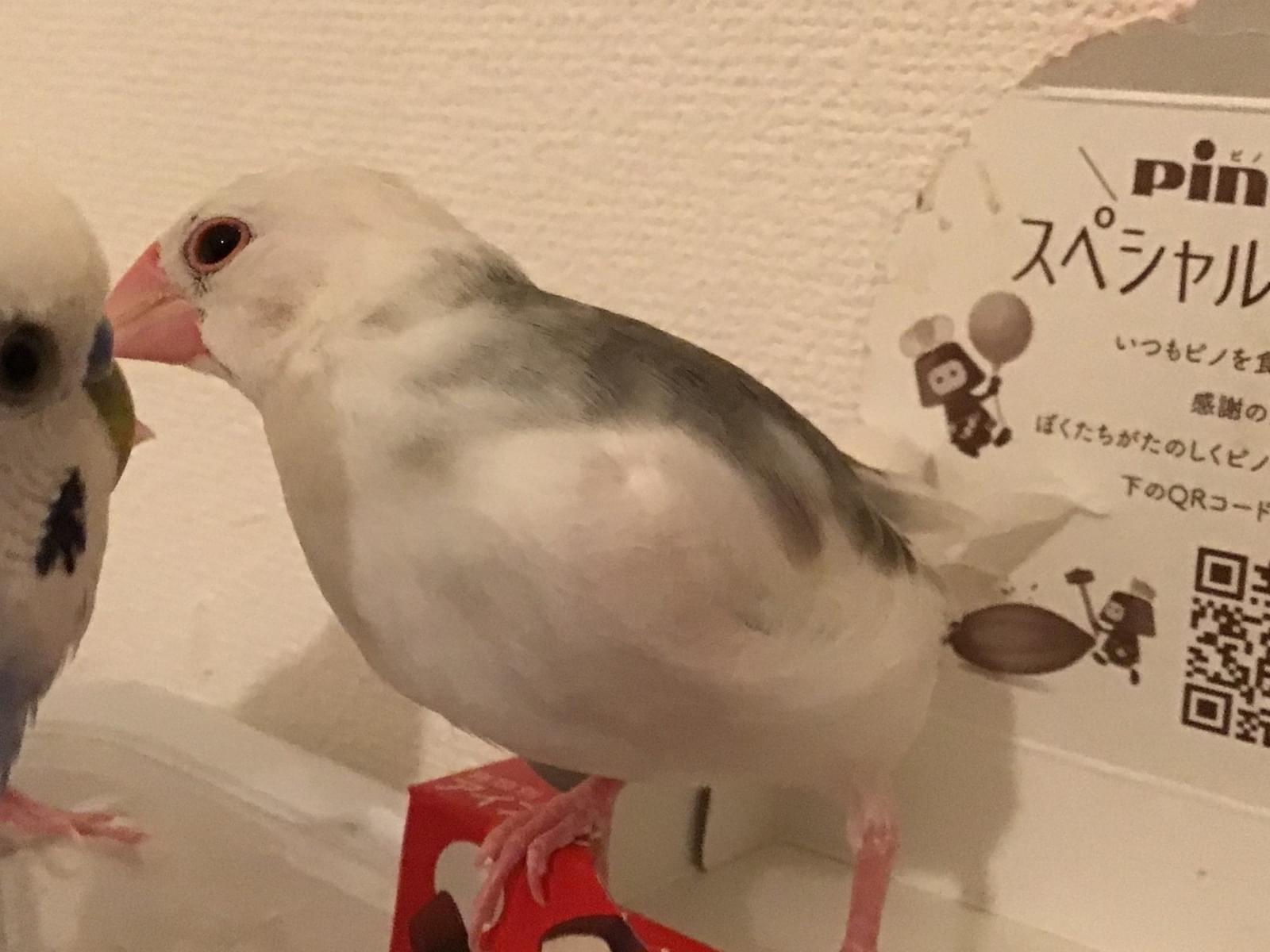 色は白で背中が灰色の文鳥で嘴はピンク色です。2022年8月6日に土浦駅付近のマンション14階から逃げてしまいました。人懐っこいので呼んだり手を近づけると飛んでくるかもしれません。もし目撃した方や保護してくださった方がいたら教えていただけるとうれしいです。(貼り付けた写真を撮った時から時間が経っています。今は写真の状態よりも背中の灰色は薄めです)