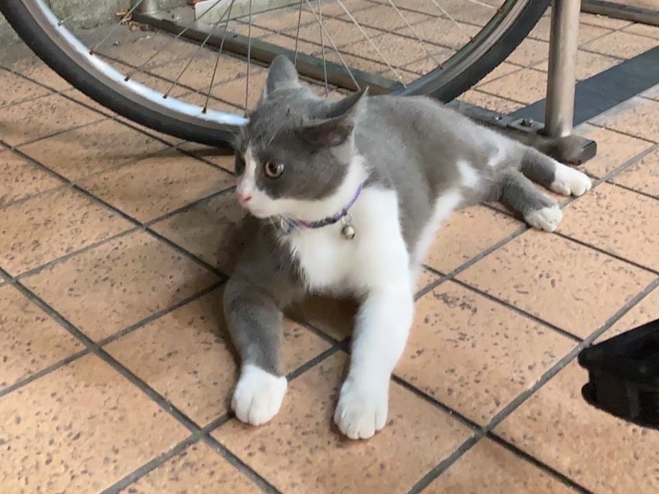 グレーのハチワレちゃん目撃