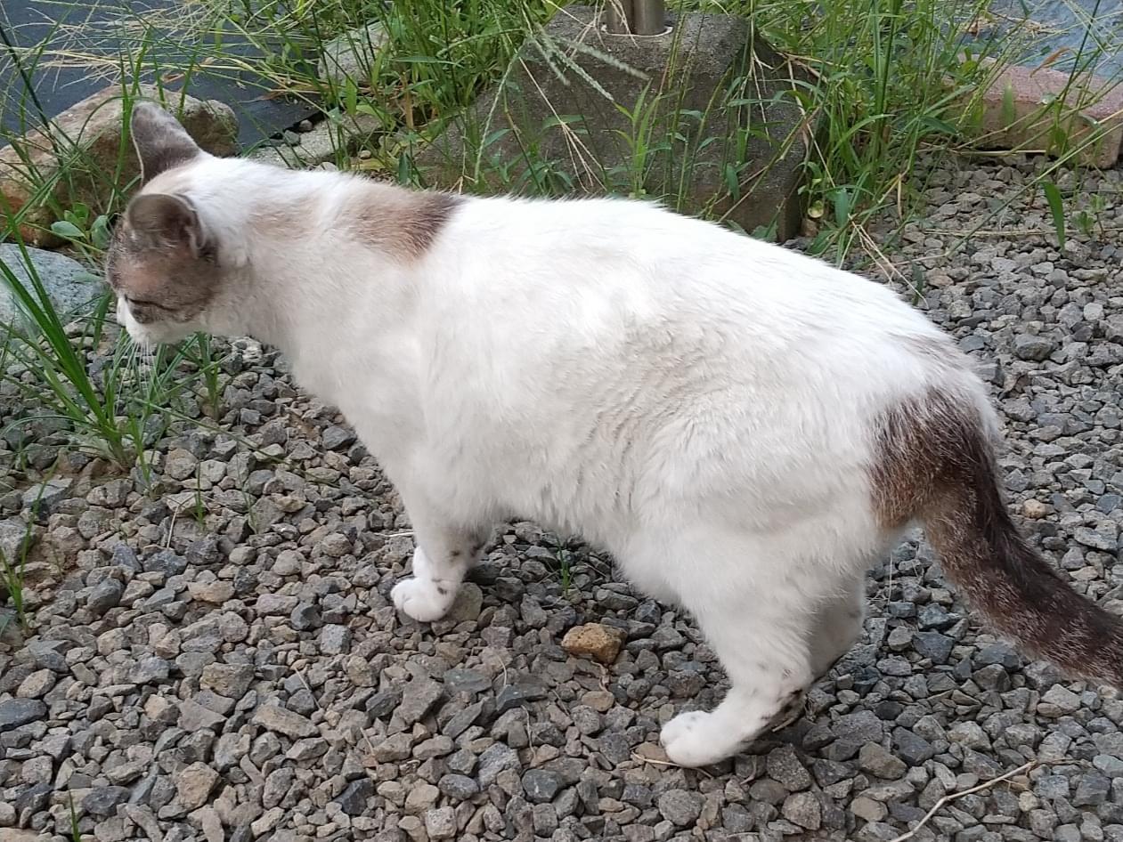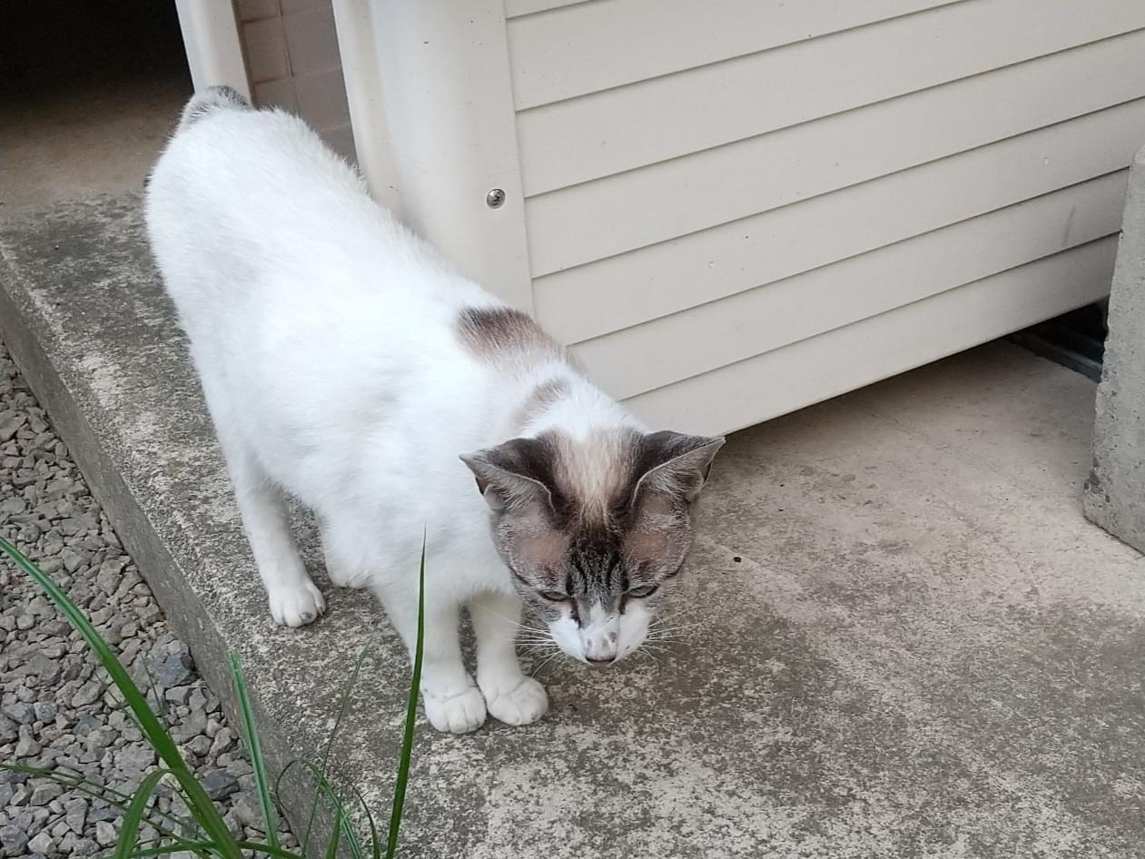 朝5:30頃玄関先にいました。多少人慣れしてるしお腹もそんなに空いてなさそう。飼い猫だった可能性ありの為載せさせていただきます。女の子かと思いましたが、身体の大きさからもしかしたら去勢済みの男の子かも。耳カットは無いように見受けられます。瞳はブルーががっていて寄り目がちのとても可愛らしいお顔をしています。