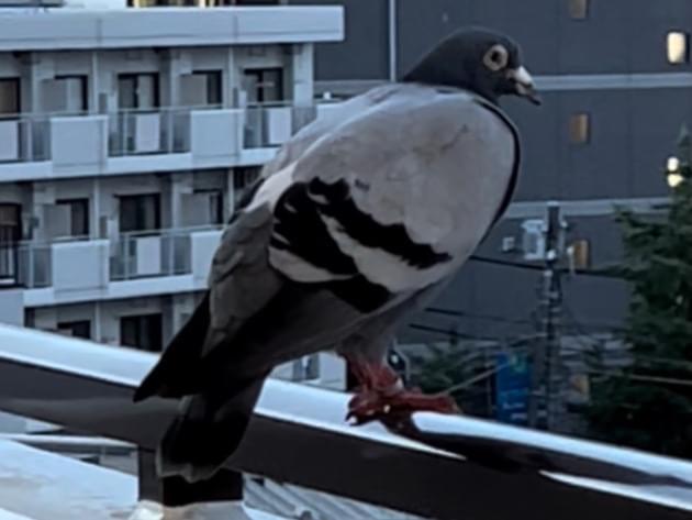 8月11日の夕方ごろから夜11時現在も、右足に足輪がついた鳩がマンションの廊下にいます。