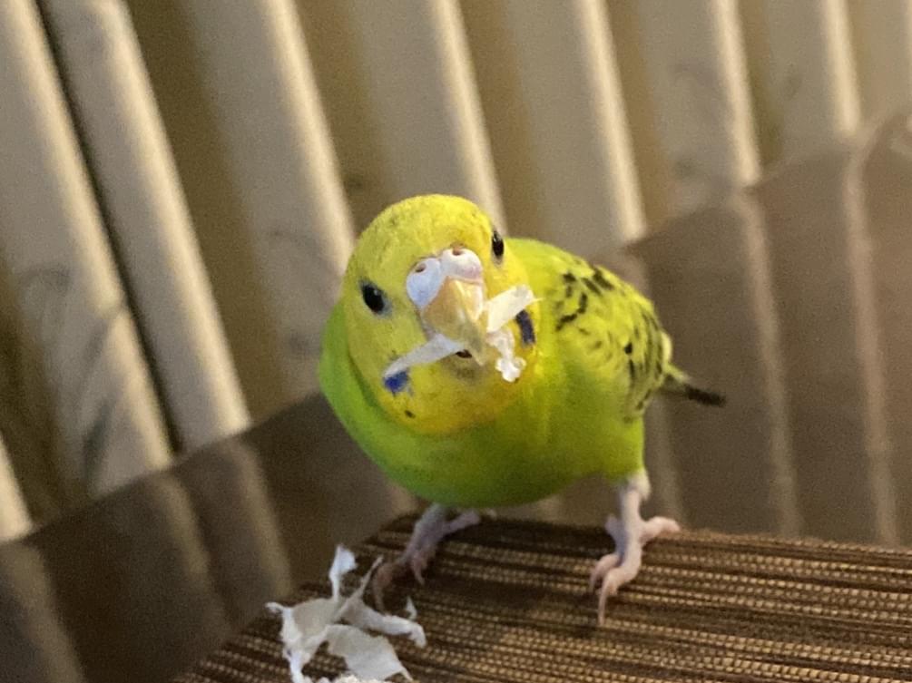 言葉は話しませんが、【ペーちゃん】と呼ぶと反応はします。羽はクリッピング伸びていますがクリッピングした跡があります✂️