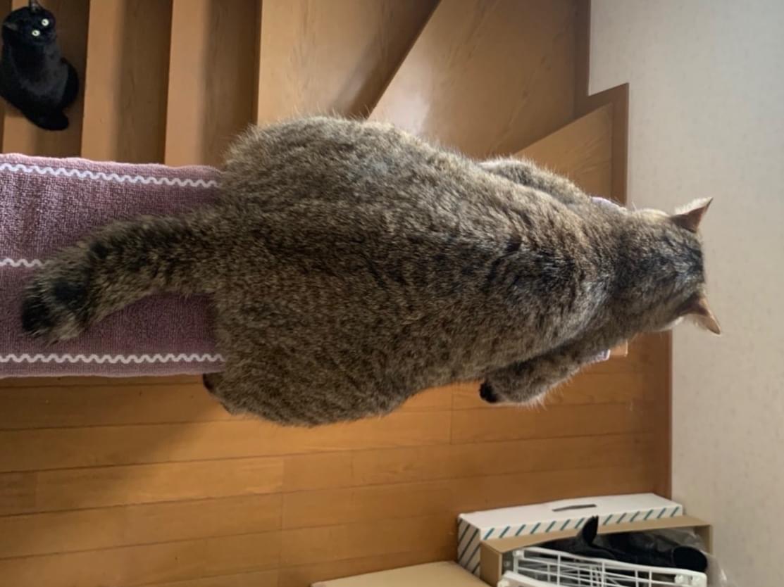 尻尾が短めで折れているような感じです。茶色の猫でメスです。小柄で細めです。