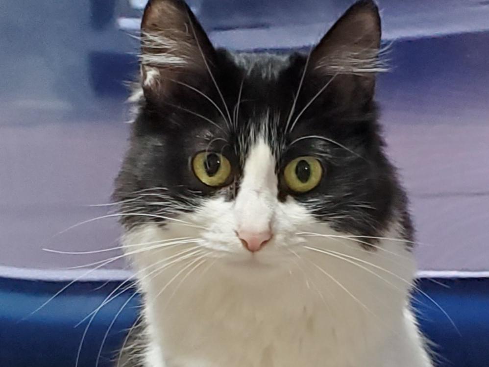 少し長めの毛のハチワレ猫迷子になってます。