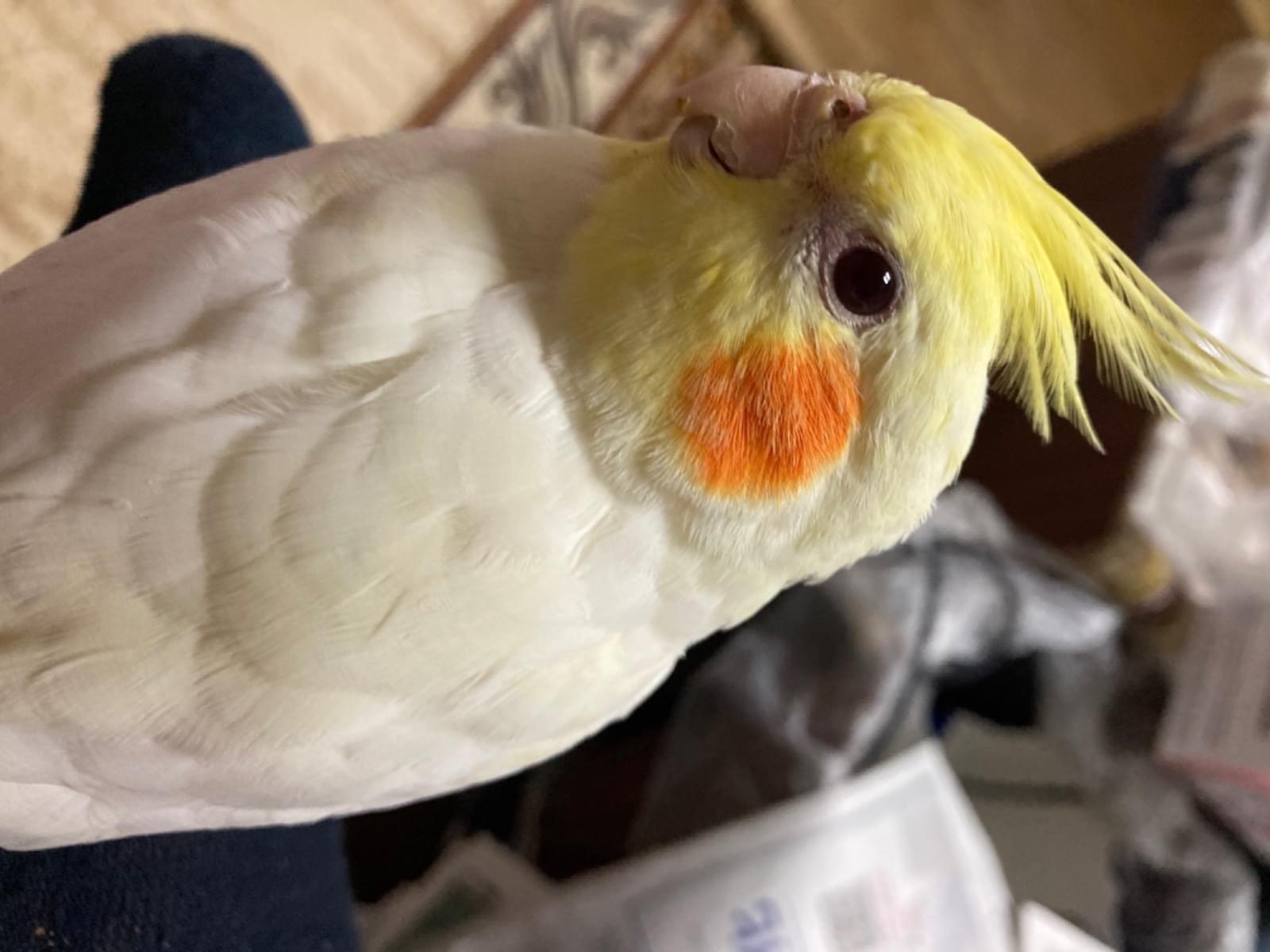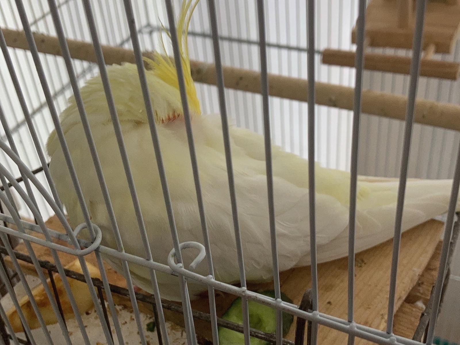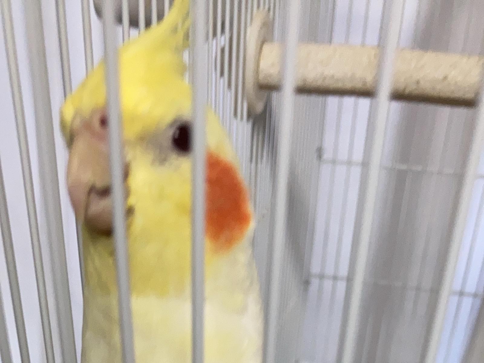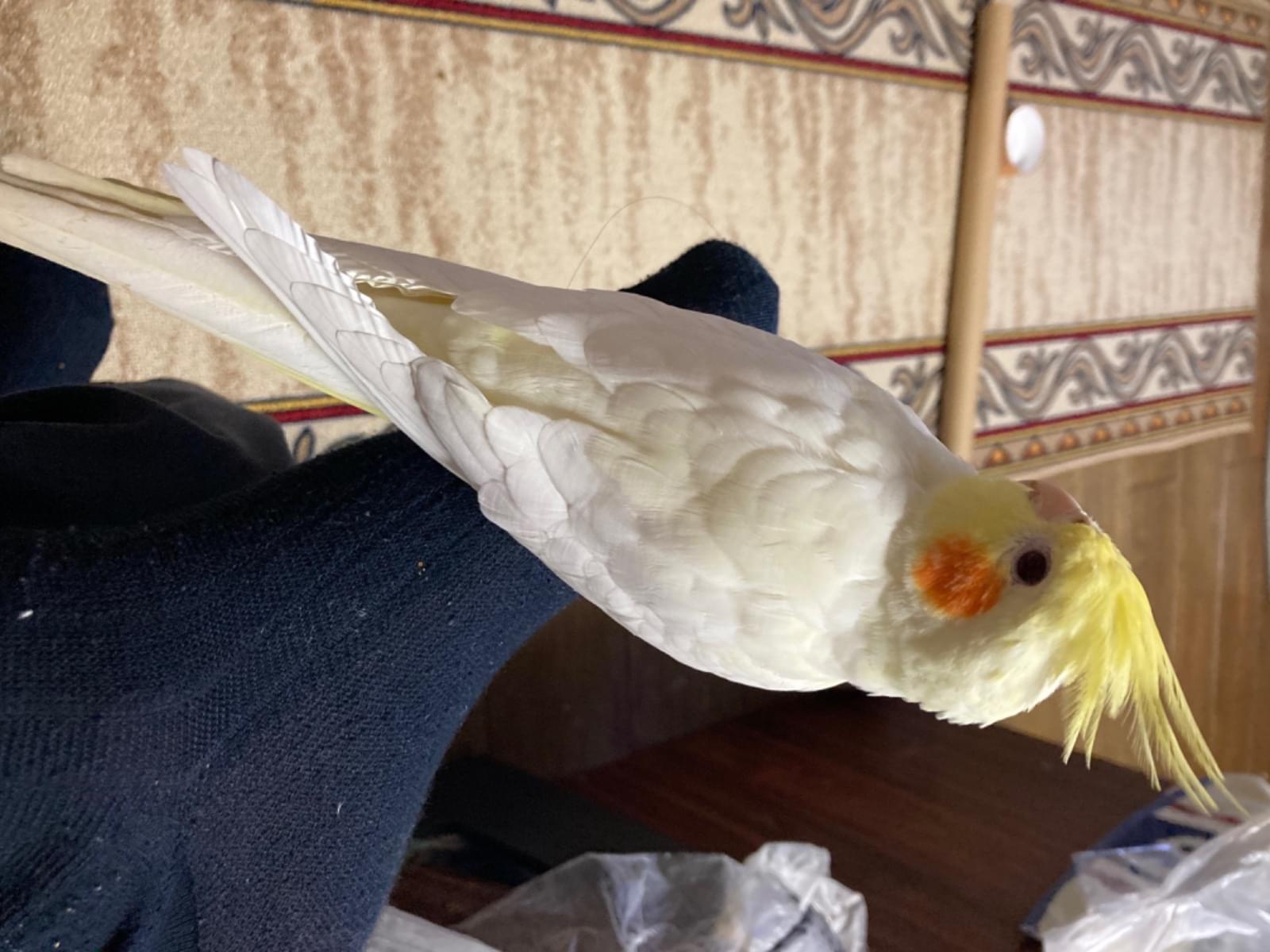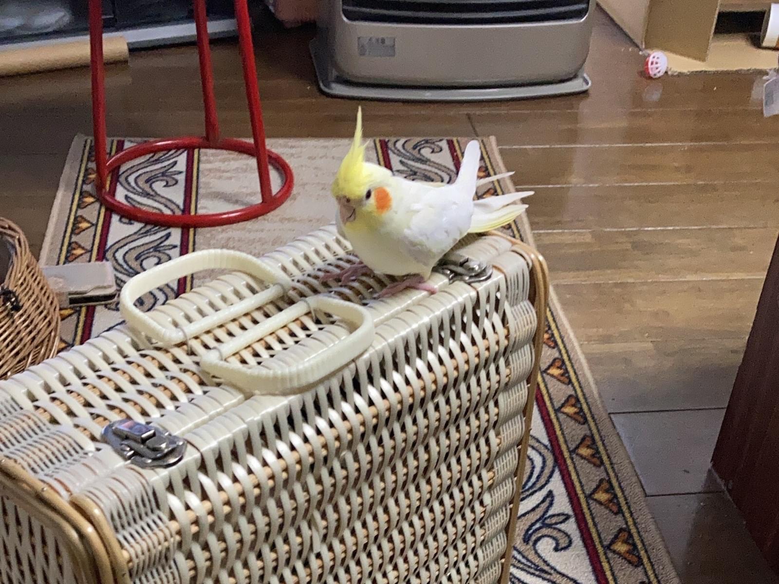 おかめいんこのももちゃんが屋外で移動中にカゴの扉が開いてしまい驚いて空へ