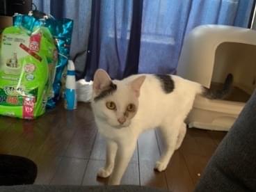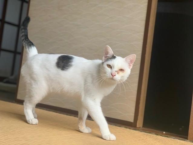 白で小さなぶち柄で左目に傷のあるメス猫を探しています