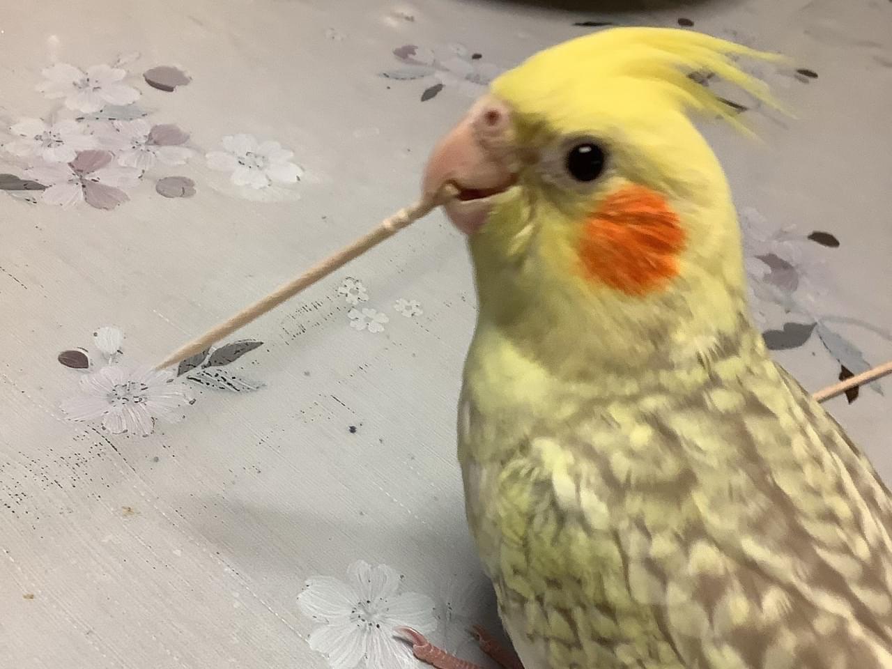 おしゃべりはできませんが、ピィーピィーと大きな声で呼び鳴きをします。頭を掻いてもらうのが好きで、頭を下げて催促します。