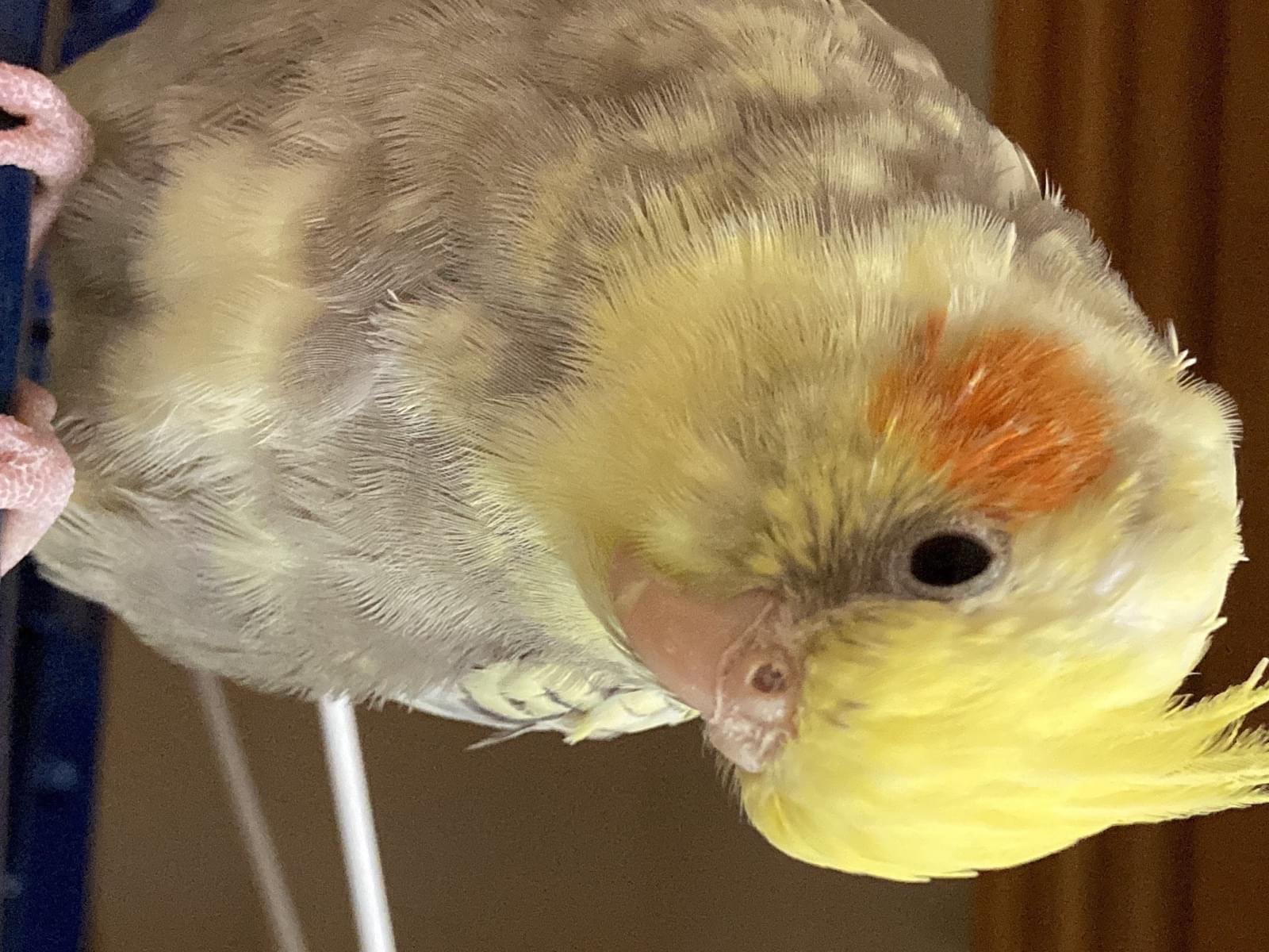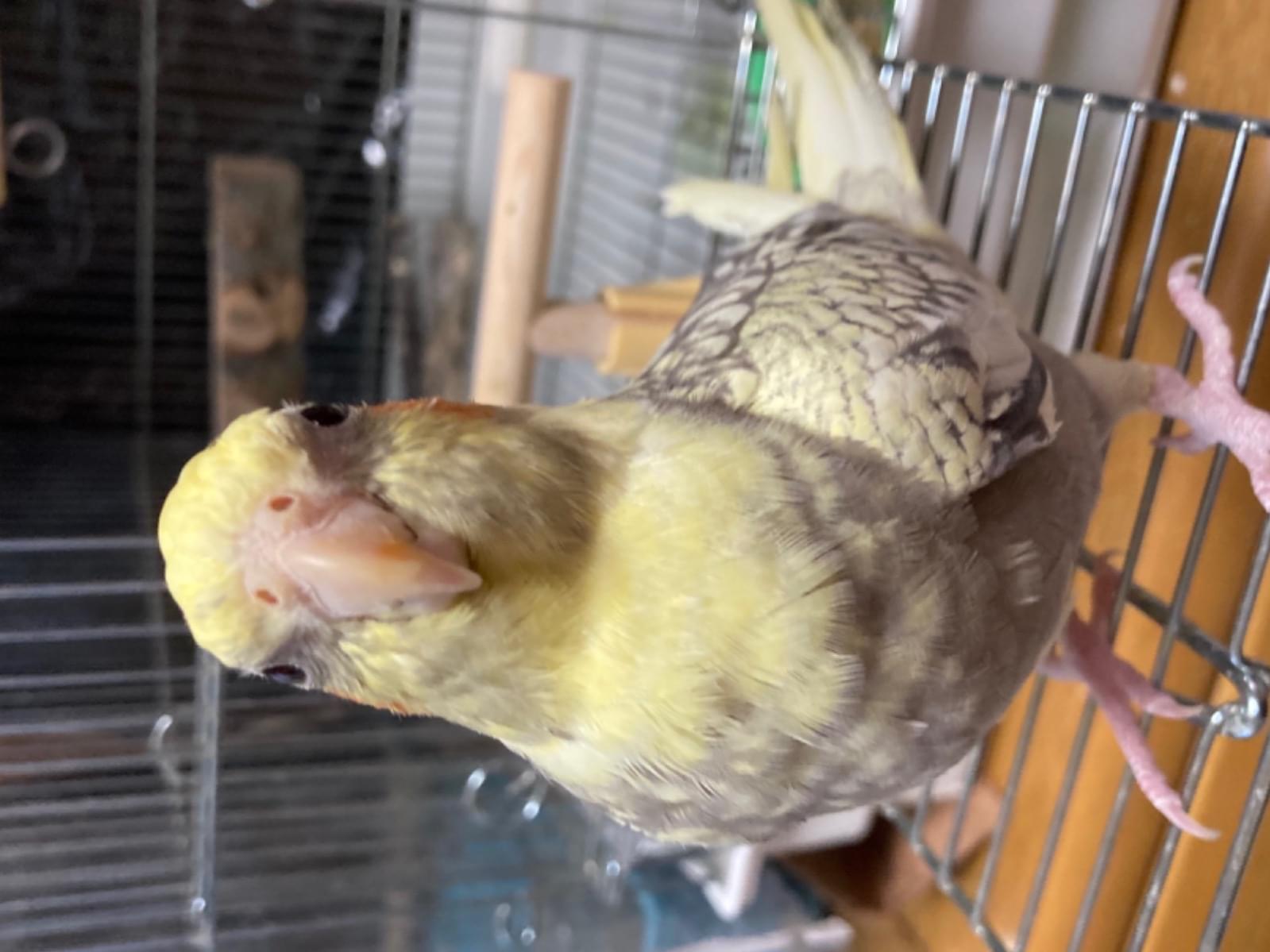 ケージの鍵が外れて外に飛び立ってしまいました。手や頭に乗ります。おしゃべりはしません。甲高いぴーと鳴きます。