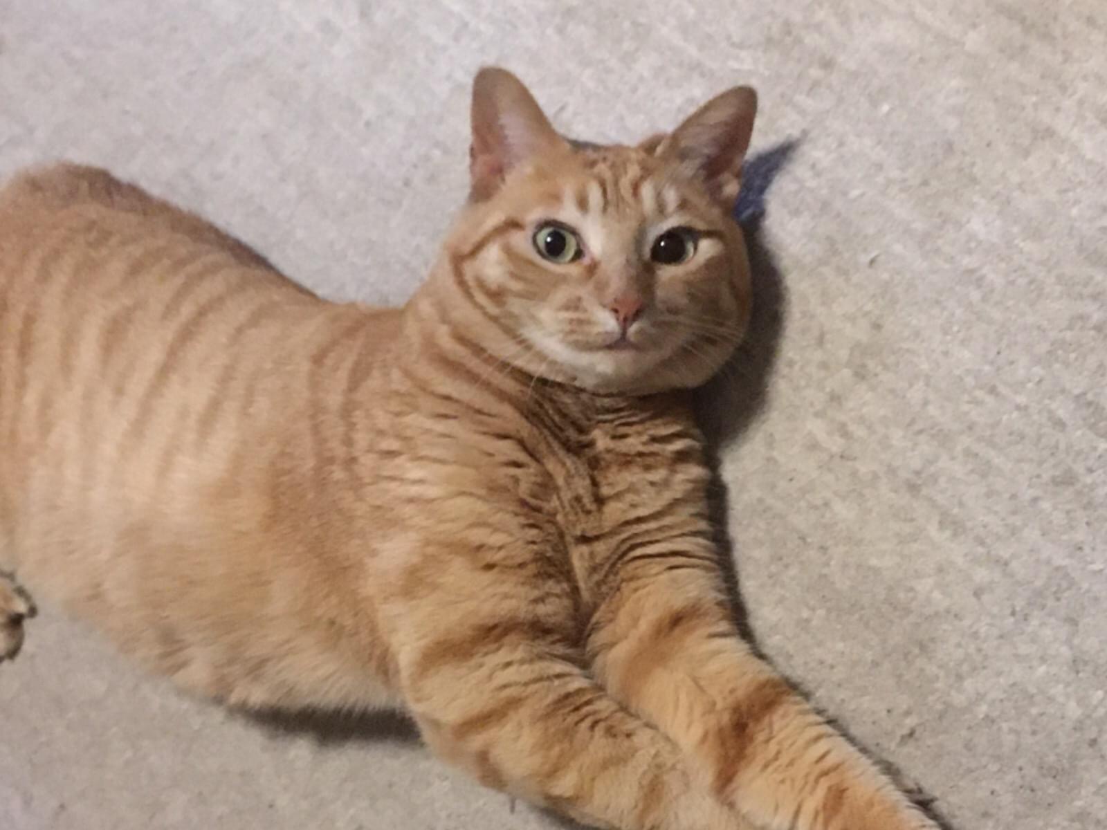 茶トラメス、行方不明時はややぽっちゃりしていましたが、現在は多少やせているかもしれません。避妊済。