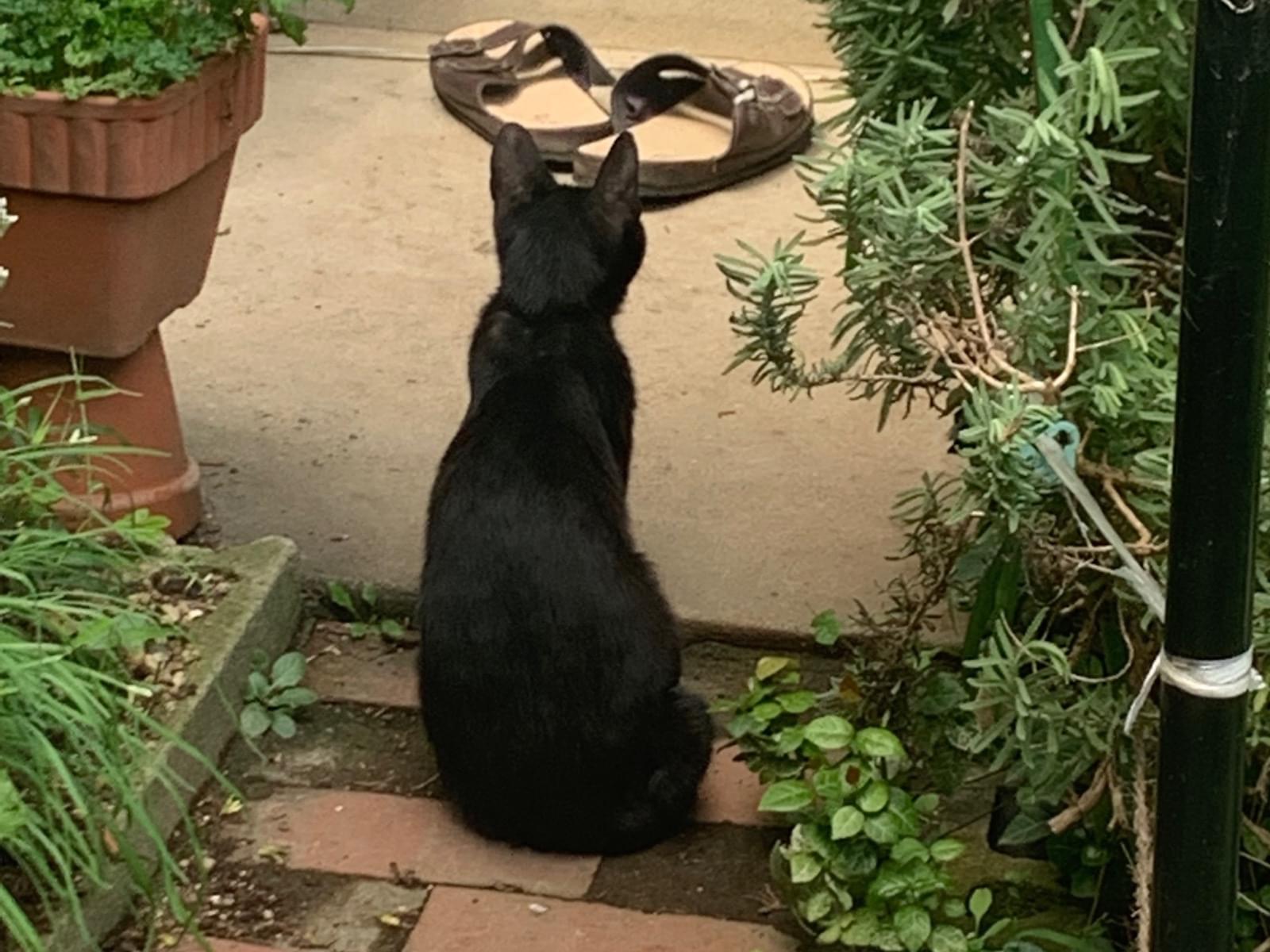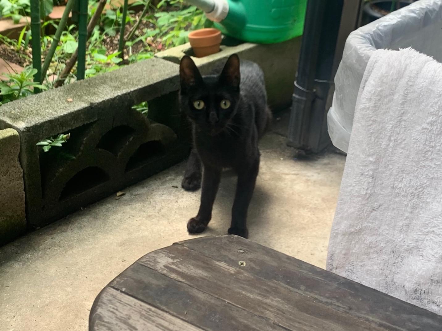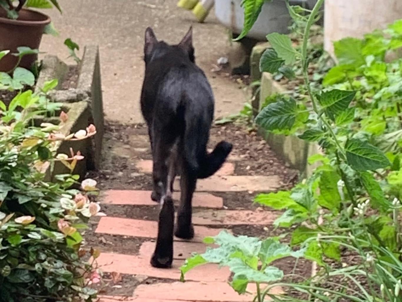 しっぽが短めの痩せた黒猫目撃