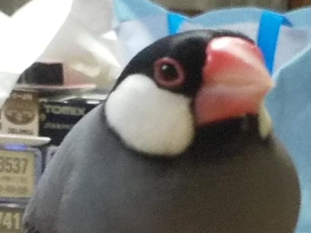 桜文鳥ですが、白い羽根は少なく、野生の文鳥に近い色合いです。くちばしの下に少しだけ白い羽根が生えているのが特徴です。