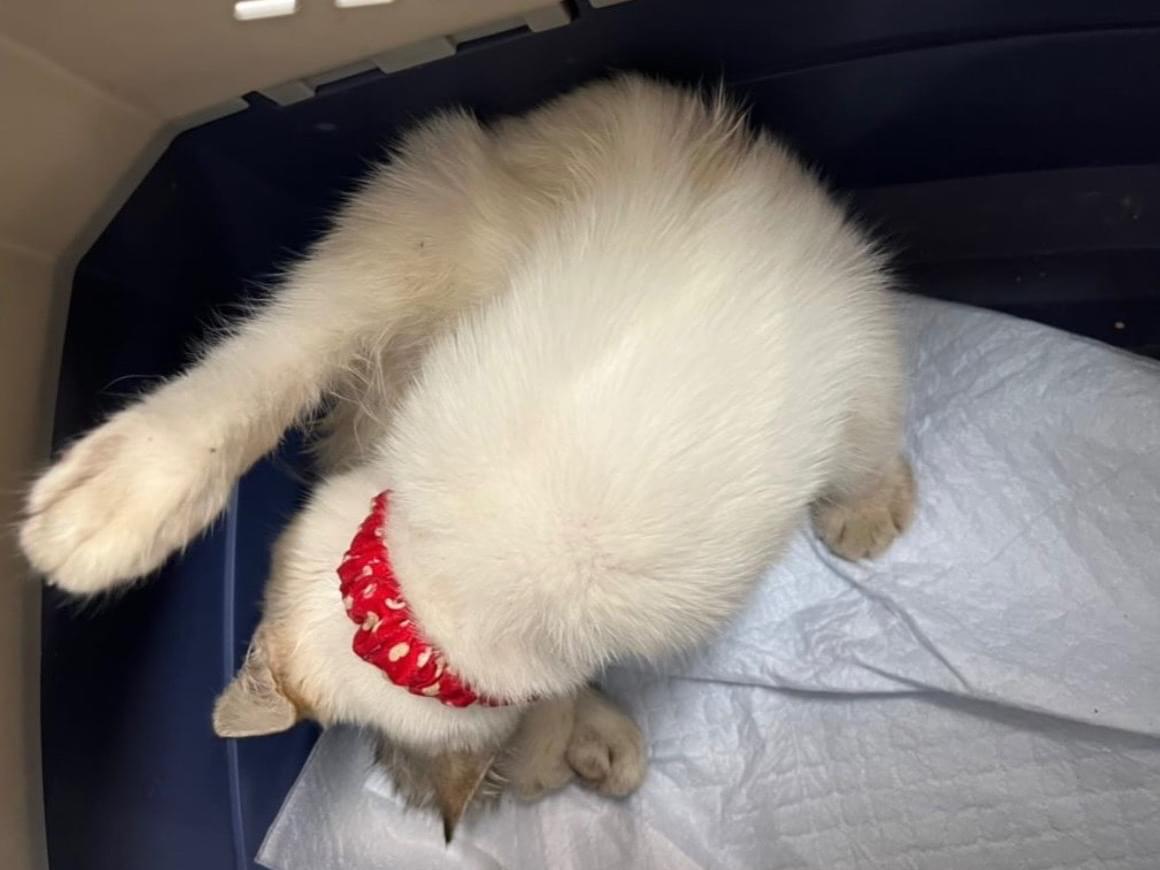 住宅街で人の後をついていくる感じから人馴れしている点。首輪を着けている事から保護。