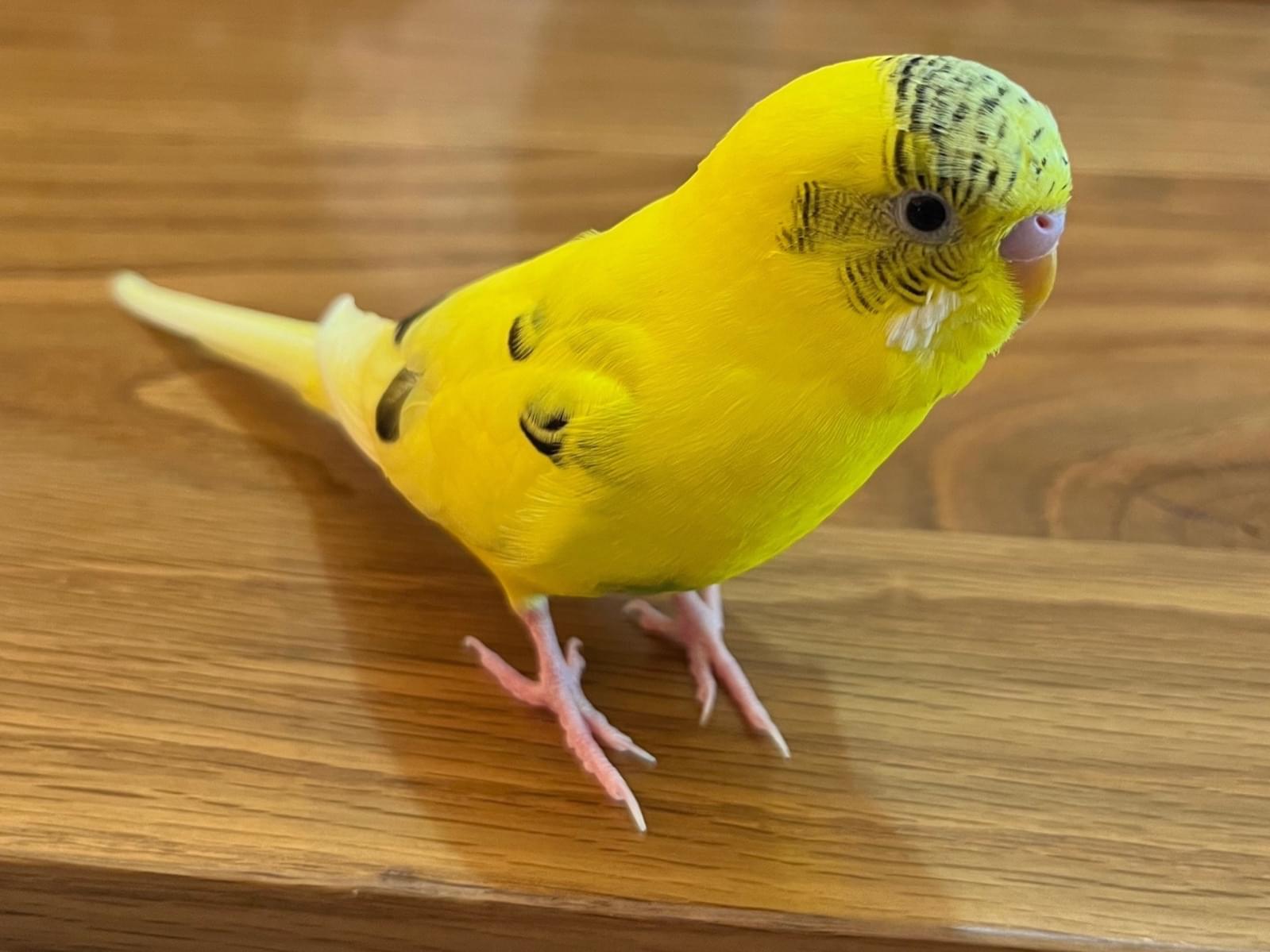 色は黄色主体で、緑や黒も含んでいます。よく喋ったり歌ったりします。人懐っこくて肩や頭、手に乗るインコです。人の声や音に興味があります。不注意で、5センチ程の窓の隙間から逃げてしまいました。大きさは尻尾を含めて15〜20センチほどです。床もよく歩いたりします。