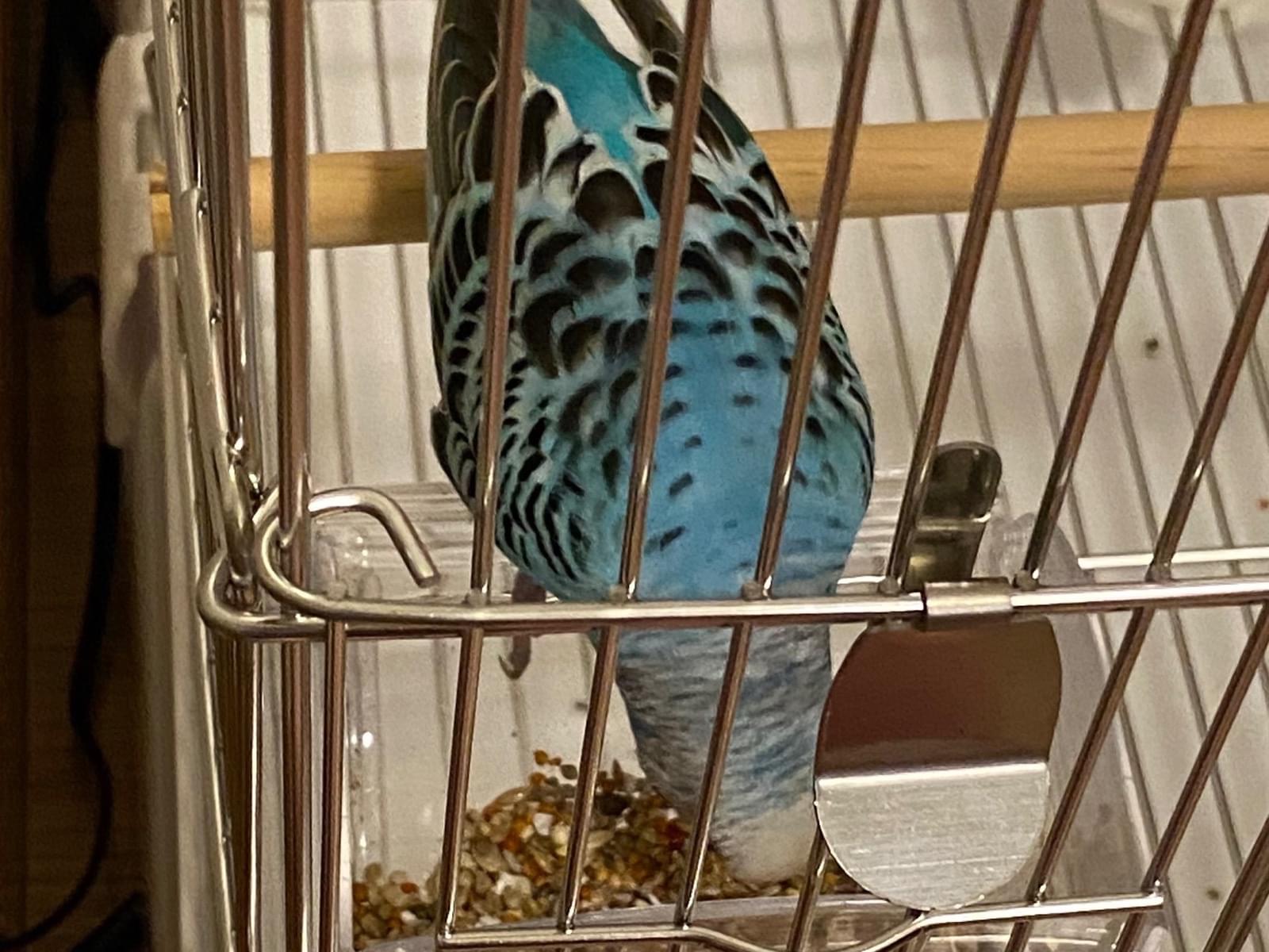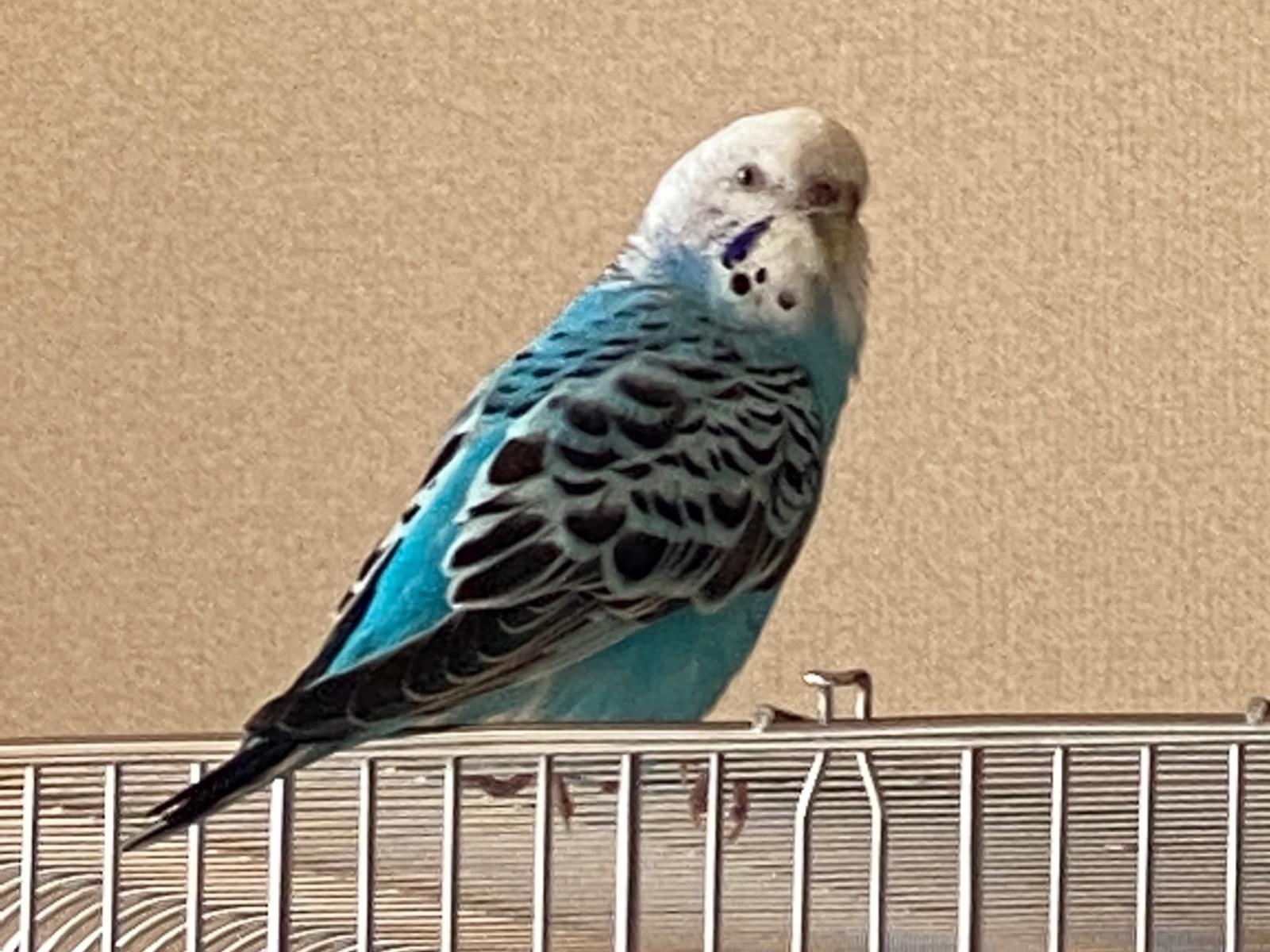 マンションのベランダに水色のセキセイインコが入ってきました。
