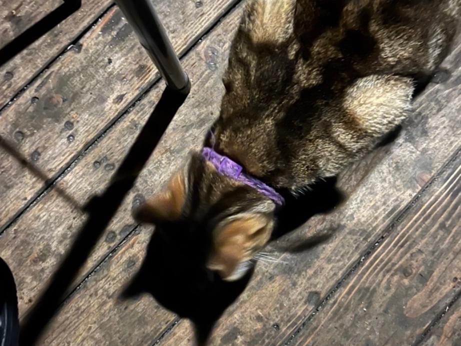 滝野すずらん公園のキャンプ場Sキャビンで紫の首輪をした猫を見ました