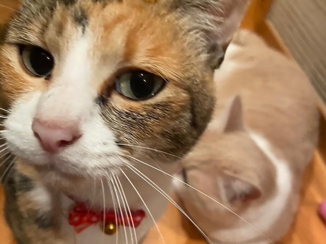 赤色っぽい首輪をつけており小さい鈴がついてます。頭が良く人慣れしていれば名前を呼んだら鳴きながら寄ってきます。
