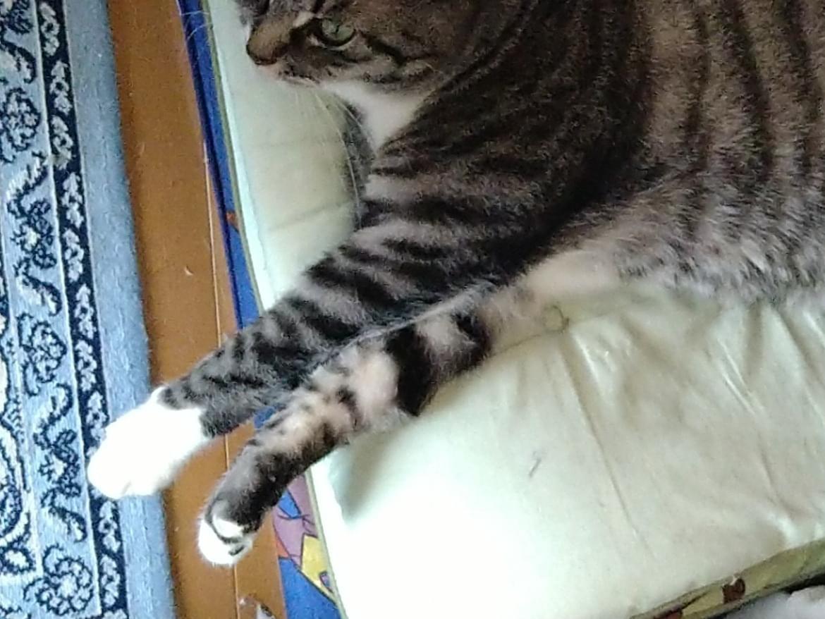 特徴は四本脚のうち二本が白く、一本は指だけ白く、もう一本はグレーです。